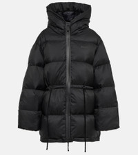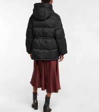 Acne Studios plays with proportion to create this puffer jacket. Enveloping the silhouette with a padded construction, this piece has a drawstring waist for flexible styling, a high neckline, and tonal logo lettering. Product Details - Made in China - Material: 100% nylon - Care instructions: dry clean - Designer color name: Black - Item number: P00714447 Size & Fit - Fits large to size - we recommend trying one size smaller - Dropped shoulders - Loose fit, drawstring waist - Elasticated hem - Thick material - Non-stretchy fabric - Falls below the hip - The model seen in the picture is 178cm-5'10" and wearing a size DT 32