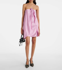 Stockholm-based Acne Studios has a firmly established cult following thanks to its Scandinavian-cool aesthetic. Made from lustrous satin, this minidress is shaped with a halter neckline and finished with delicately draped ruffle detailing. Product Details - Material: 97% viscose, 3% elastane - Care instructions: dry clean - Made in China - Designer color name: Blush Pink - Item color: pink - Item number: P01073553 Size & Fit - True to size - Low back - Straight fit - Non-stretchy fabric - The model seen in the picture is 178cm-5'10" and wearing a size DE 34