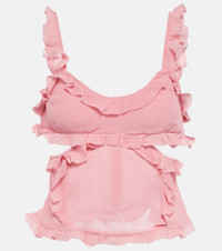 Acne Studios puts a Scandi twist on convention with a series of ultra-cool silhouettes. Appearing with an airy quality, this fully-lined top has cutout sides and is trimmed with dynamic ruffles. Product Details - Made in Italy - Material: 100% viscose - Care instructions: dry clean - Designer color name: Rose Pink - Item number: P00775720 Size & Fit - True to size - Fitted - Lightweight material - Slightly cropped - The model seen in the picture is 178cm-5'10" and wearing a size DT 34