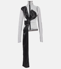 This sheer top from Acne Studios features a draped bow detail on the front. The turtleneck design comes with long sleeves and has a regular fit. Product Details - Material: 88% nylon, 12% elastane - Made in Italy - Material II: 97% polyester, 3% elastane - Designer color name: Black - Care instructions: dry clean - Closure: zipper fastening - Item number: P00778388 Size & Fit - True to size - Semi-sheer - Fitted - Lightweight material - Falls to the hip - The model seen in the picture is 178cm-5'10" and wearing a size DT 34