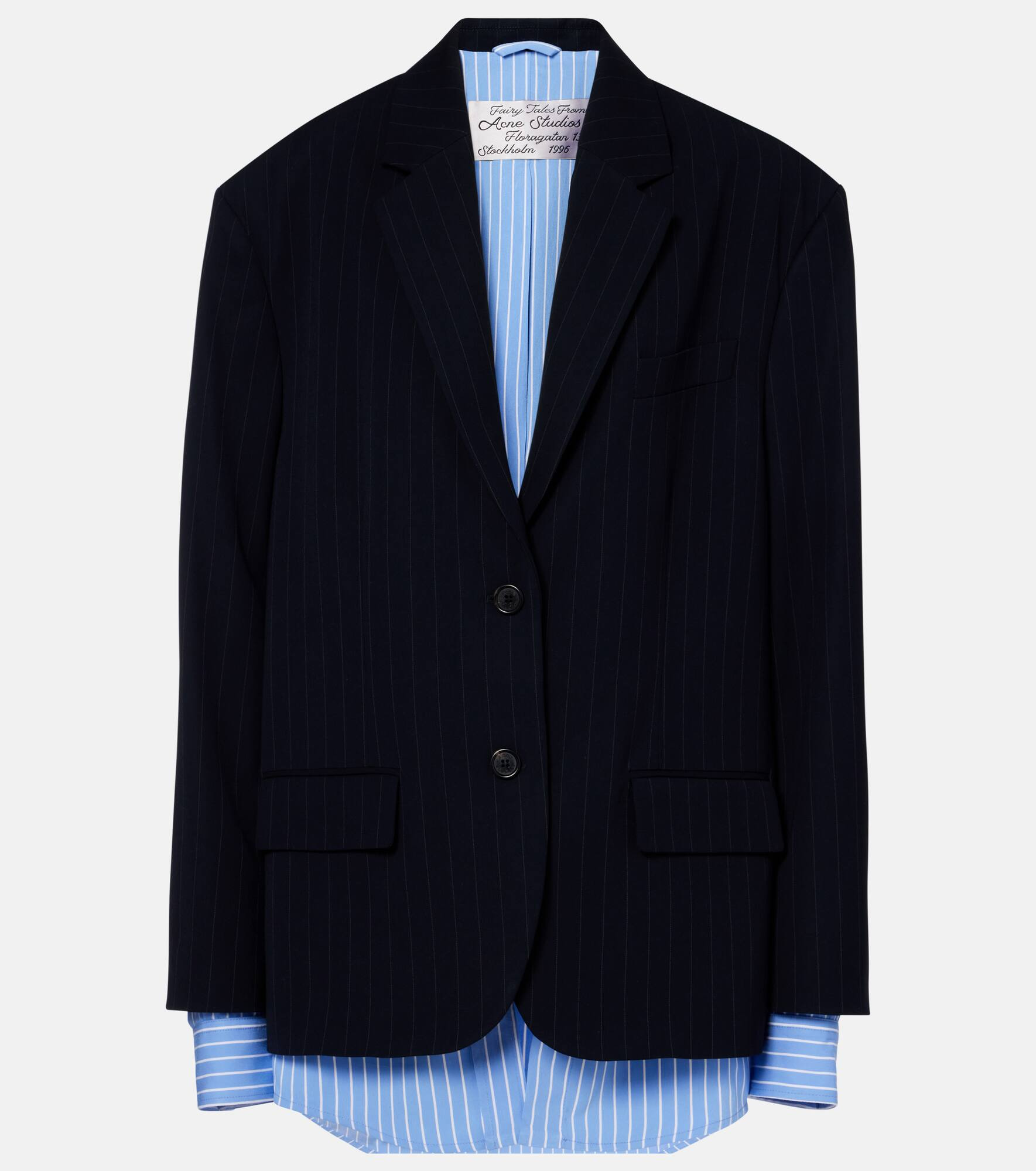 Stockholm-based Acne Studios has a firmly established cult following thanks to its Scandinavian-cool aesthetic. This single-breasted blazer has shoulder pads, notched lapels, and is finished with internal, welt, and flap pockets. Product Details - Material: 97% viscose, 3% elastane - Care instructions: dry clean - Made in Lithuania - Designer color name: Navy - Item color: blue - Lining: 100% viscose - Lining II: 89% viscose, 11% nylon - Pockets: internal pocket, welt pocket, flap pockets - Closure: single-breasted (two buttons) - Notched lapel - Shoulder pads - Cuff: buttoned - Item number: P01088664 Size & Fit - True to size - For a closer fit, we recommend taking one size down - Shoulder pad inserts - Oversized - Non-stretchy fabric - Falls below the hip - The model seen in the picture is 178cm-5'10" and wearing a size DE 34