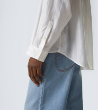 Product Details - Material: 100% cupro - Care instructions: dry clean - Made in Bulgaria - Designer color name: White - Closure: button-down - Item number: P01004607 Size & Fit - True to size - Dropped shoulders - With pleats in the back - Oversized - Non-stretchy fabric - Falls below the hip - The model in the picture is 185cm-6'1" and wearing a size IT 50