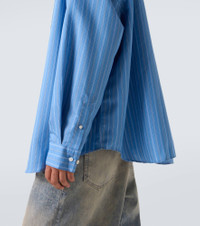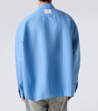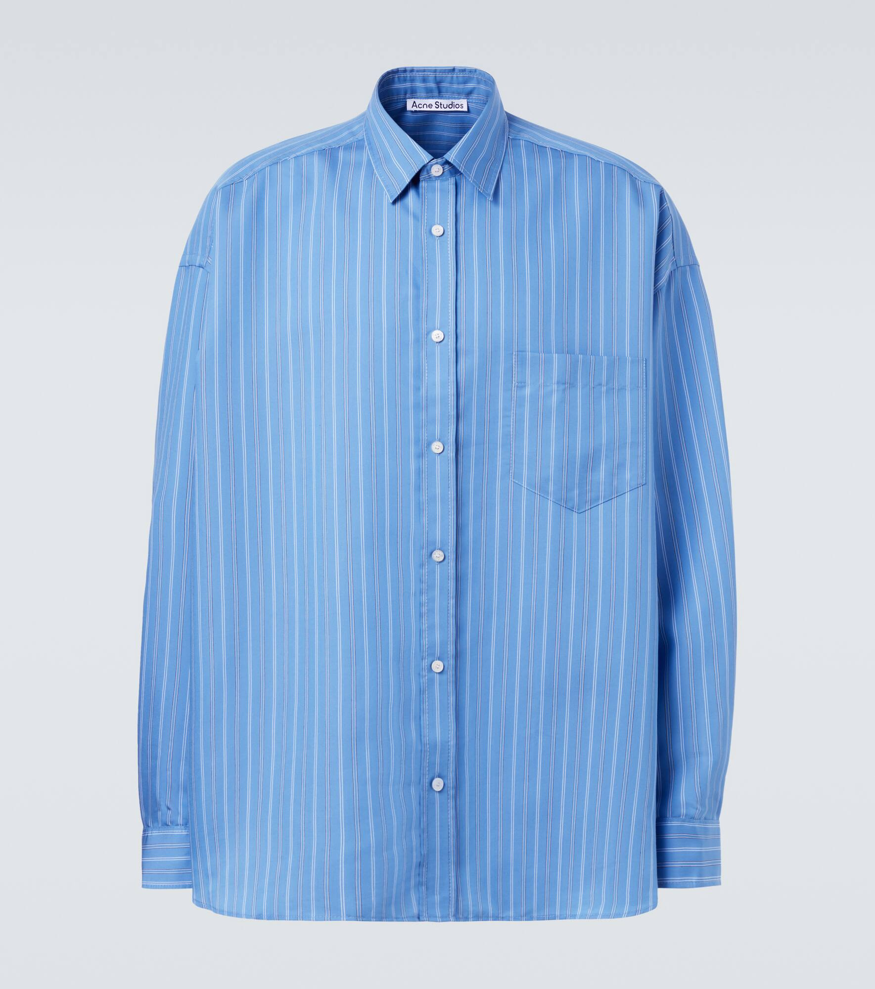 Acne Studios has a firmly established cult following thanks to its Scandinavian-cool aesthetic. Designed with an oversized fit, this striped shirt features a straight collar, a chest pocket, and a branded patch at the back. Product Details - Material: 84% lyocell, 16% polyester - Care instructions: machine wash at 30 degrees - Made in Morocco - Designer color name: Blue Multi - Item color: blue - Contains non-textile parts of animal origin - Collar: classic (Straight point) - Closure: buttoned front - Cuff: buttoned - Pockets: angled chest pocket - Item number: P01066539 Size & Fit - True to size - Dropped shoulders - Without pleats in the back - Oversized - Non-stretchy fabric - Falls below the hip - Height of model is 188cm-74" and wears a size IT 50
