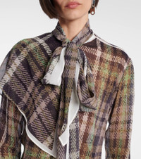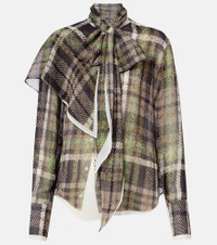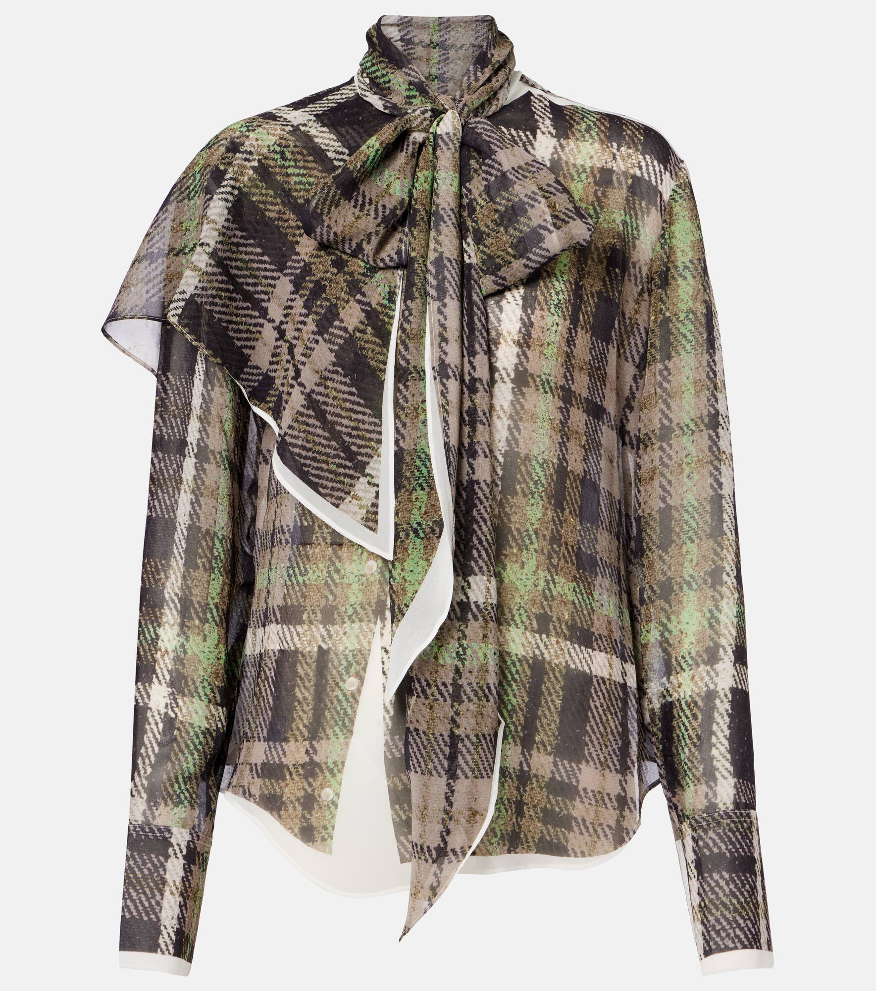 Stockholm-based Acne Studios has a firmly established cult following thanks to its Scandinavian-cool aesthetic. Made purely from silk, this blouse features an all-over trompe l'oeil checked print, a bow scarf and cape, and the brand logo at the back. Product Details - Material: 100% silk - Care instructions: specialist clean - Made in China - Designer color name: Green\Grey - Item color: multicolor - Closure: button fastening, self-ties - Item number: P01088928 Size & Fit - True to size - Semi-sheer - Straight fit - Non-stretchy fabric - Falls below the hip - The model seen in the picture is 178cm-5'10" and wearing a size DE 34