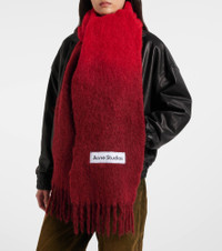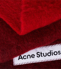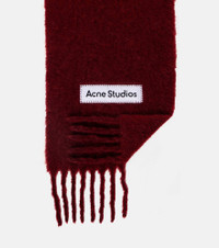 Stockholm-based Acne Studios has earned a firmly established cult following through its cool Scandinavian aesthetic. The Vally scarf is crafted from a soft yarn and features delicate fringes and a leather logo patch. Product Details - Material: 33% alpaca wool, 25% wool, 22% nylon, 20% mohair - Care instructions: dry clean - Made in Italy - Designer color name: Red - Item color: red - Item number: P01098765 Size & Fit - Length 250cm-98.5" - Width 28cm-11" - Length of fringe 10cm-4"
