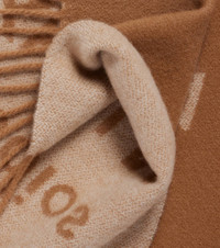 Stockholm-based Acne Studios has a firmly established cult following thanks to its Scandinavian-cool aesthetic. Showcasing the brand name in a bold jacquard print, the Venus 1996 scarf is made from wool and finished with fringed edges. Product Details - Material: 100% wool - Care instructions: dry clean - Made in Italy - Designer color name: Camel/Ecru - Item color: beige - Item number: P01046985 Size & Fit - Length 200cm-78.5" - Width 43cm-17" - Length of fringe 8cm-3"
