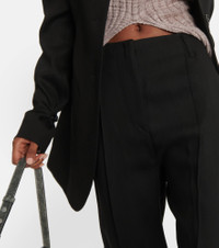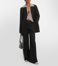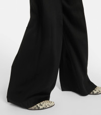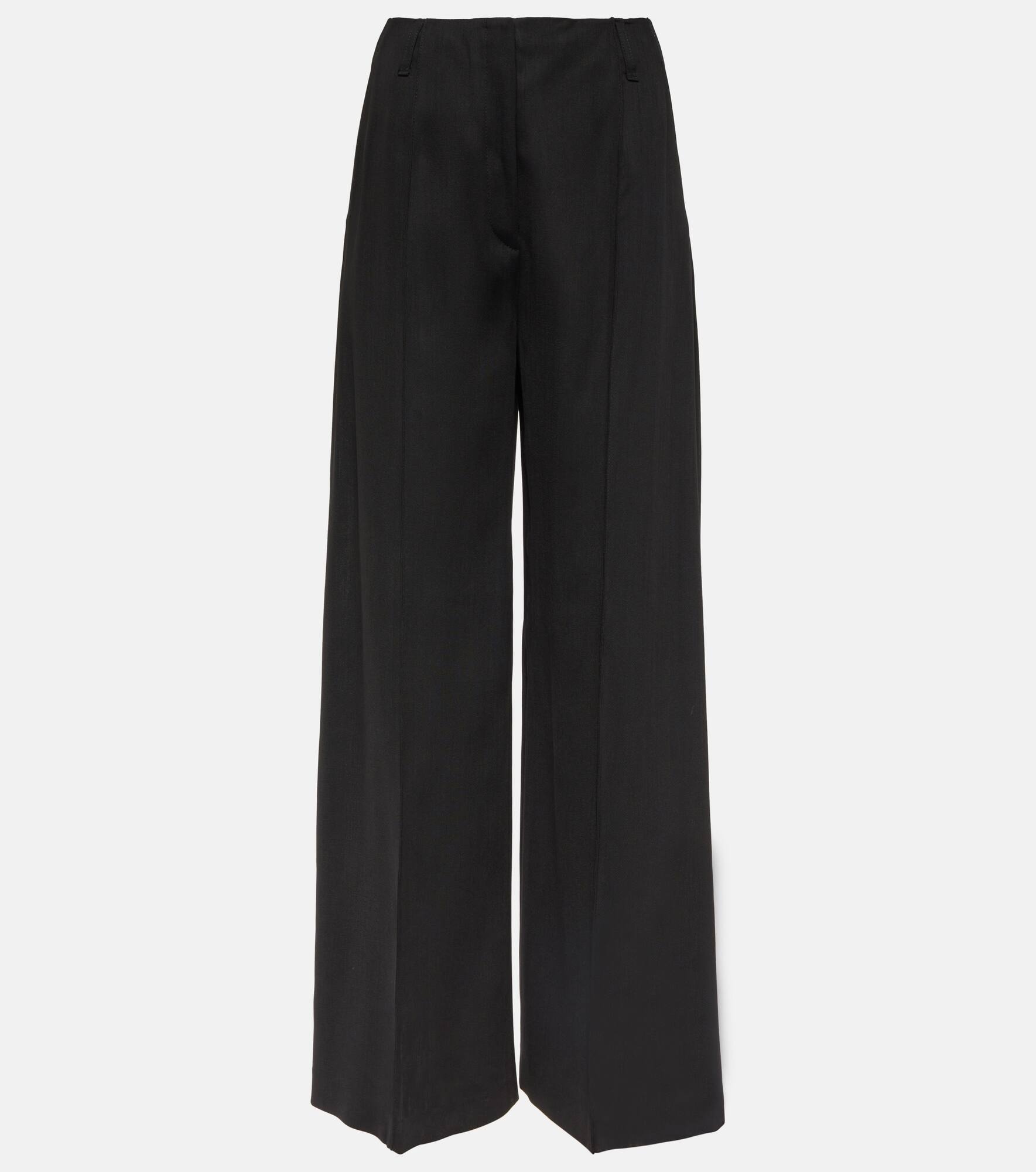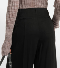 Stockholm-based Acne Studios has a firmly established cult following thanks to its Scandinavian-cool aesthetic. Tailored from a black wool blend, these cotton-lined wide-leg pants have a fluid quality with pressed creases and slanted side pockets. Product Details - Closure: zipper fly, button and hook fastenings - Made in Portugal - Belt loops - Designer color name: Black - Pocket lining: 100% cotton - Care instructions: dry clean - Pockets: slit pockets, side slit pockets - Material: 31% viscose, 69% wool - Item number: P00844027 Size & Fit - True to size - Non-stretchy fabric - Wide-leg - High-waisted - The model seen in the picture is 178cm-5'10" and wearing a size DT 34