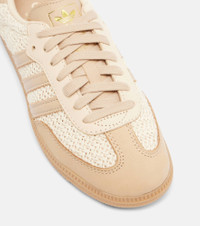 Originally designed as football boots, the Samba OG sneakers are the ultimate Adidas collectible. This pair has leather-trimmed uppers featuring the iconic three stripes on the sides and a clean, low-top silhouette. Product Details - Upper: leather, fabric - Lining: fabric - Sole: fabric insole, rubber sole - Toe shape: round toe - Made in Vietnam - Includes: shoe box - Designer color name: Sand Strata/Magic Beige/Gum 3 - Item color: beige - Closure: lace-up - Item number: P01085600 Size & Fit - True to size - UK sizes - 2cm-1" platform (size EU 38)