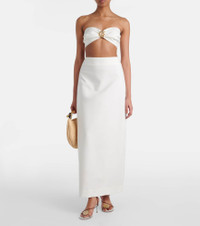 This bandeau top from Adriana Degreas is perfect for stylish summer escapes. It's made from a soft cotton blend and adorned with gleaming sheashell-inspired hardware on the front. Product Details - Material: 97% cotton, 3% elastane - Care instructions: hand wash - Made in Brazil - Color: white - Designer color name: White - Item color: white - Closure: buttoned back - Item number: P01045843 Size & Fit - Fits small to size - we recommend trying one size larger - Strapless - Fitted - Non-stretchy fabric - Cropped - The model seen in the picture is 178cm-5'10" and wearing a size S