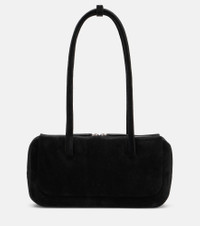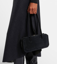 Sculptural silhouettes and the finest materials shape Aesther Ekme's vision of refined minimalism. The Lagune Mini shoulder bag is crafted from suede with a structured shape and features two rigid top handles for easy carrying. Product Details - Material: calf leather (suede) - Lining: fabric - Made in Spain - Designer color name: 101 Black - Item color: black - Hardware color: silver - Closure: two-way zipped top - Top handles - Internal details: single compartment, internal slot pocket - Includes: dust bag - Item number: P01039127 Size & Fit - Height 13,5cm-5.5" - Width 26cm-10" - Depth 6,5cm-2.5" - Length of handles 60cm-23.5"