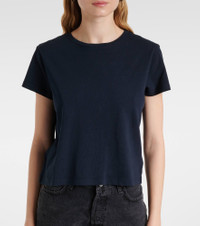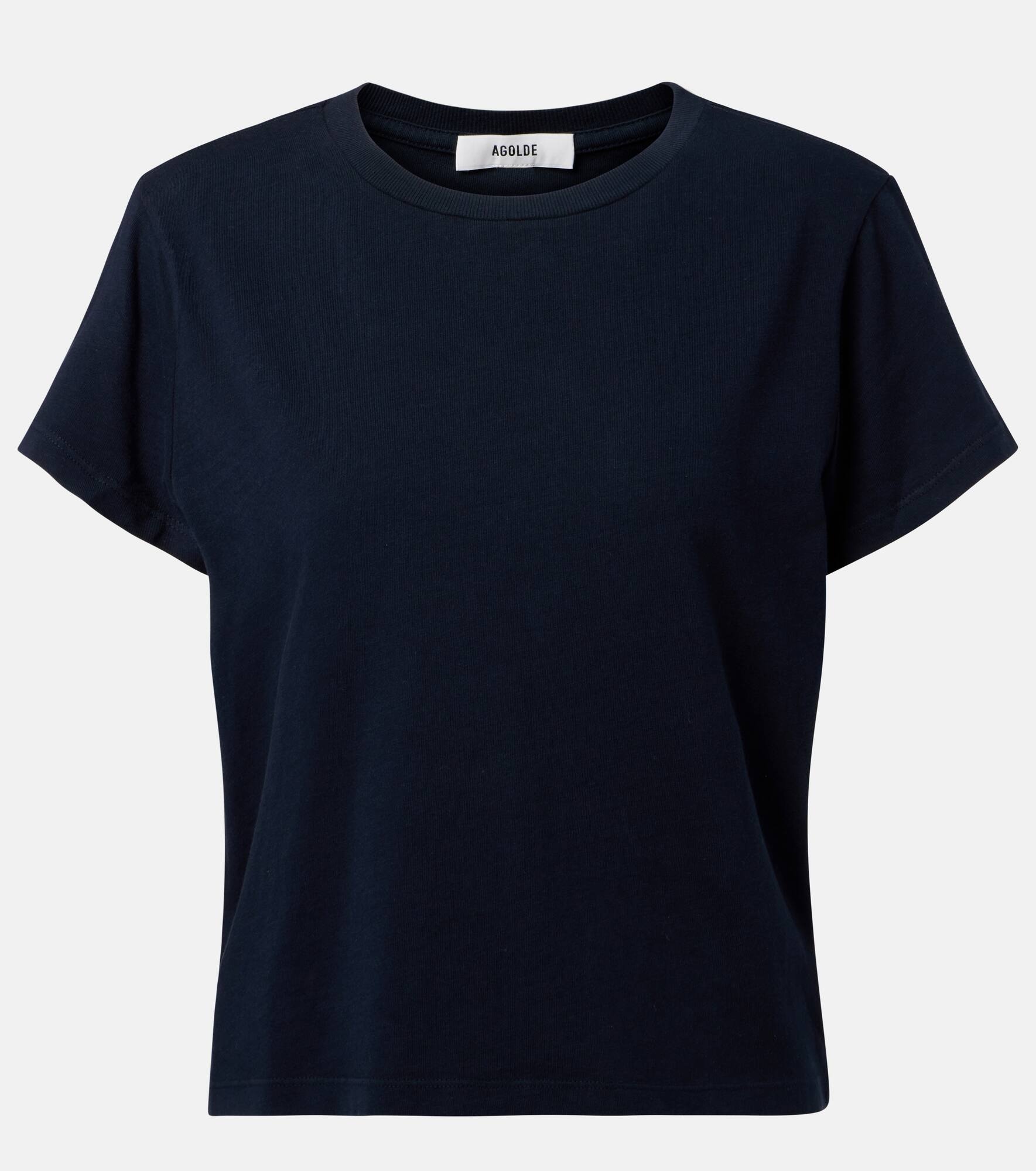 Build your staples collection around pieces like the Adine Shrunken T-shirt from Agolde. Made from a breathable and lightweight cotton jersey, this crewneck style is perfect for layering. Product Details - Material: 100% cotton - Care instructions: machine wash cold - Made in the USA - Designer color name: Storm - Item color: blue - Item number: P01057531 Size & Fit - True to size - Straight fit - Stretchy fabric - Slightly cropped - The model seen in the picture is 178cm-5'10" and wearing a size XS