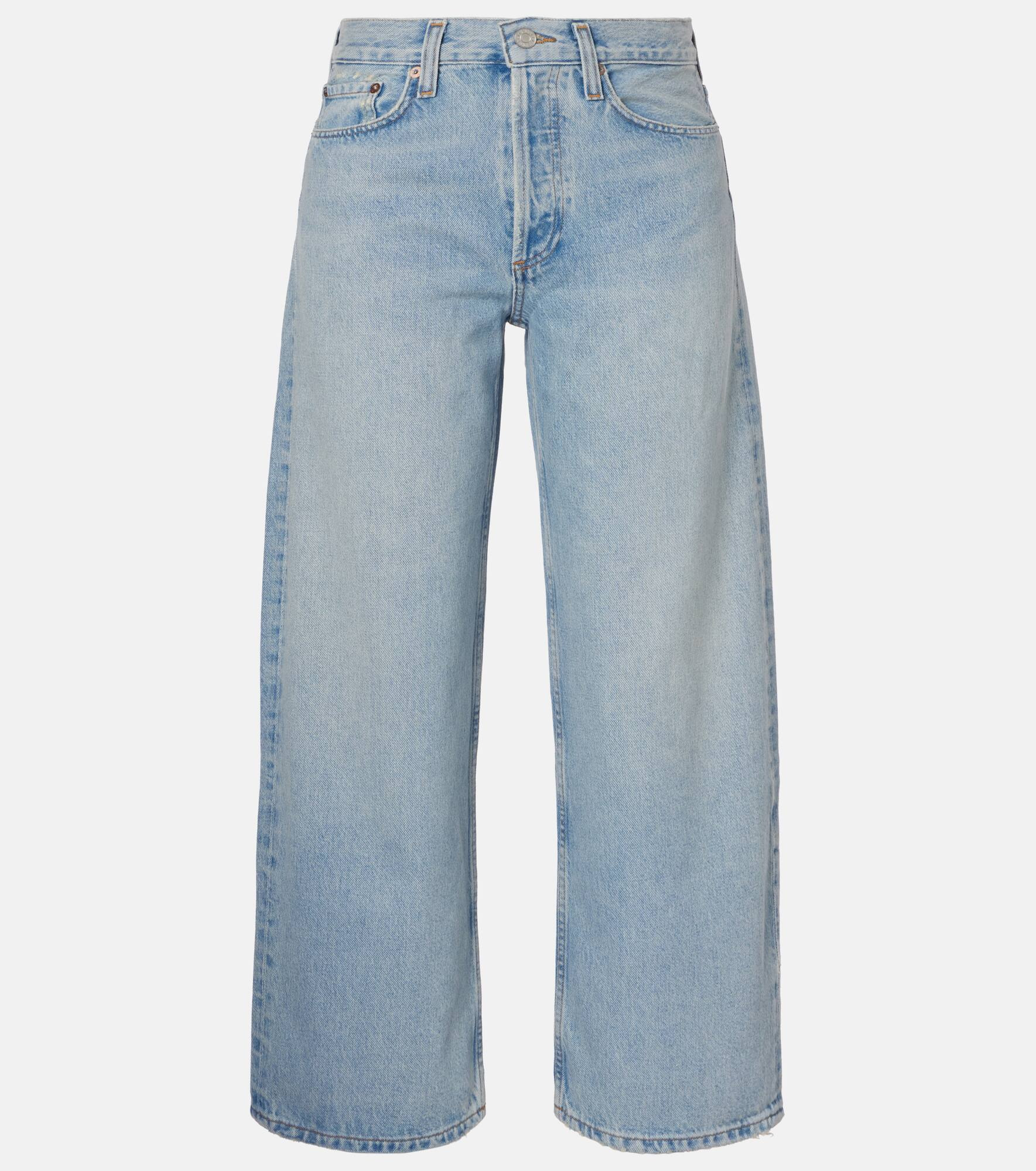 Setting the standard for modern denim, all of Agolde's designs are fit-tested and crafted from premium fabric. The Arc jeans feature a slightly cropped, wide-leg silhouette along with fading details. Product Details - Material: 100% cotton (organic) - Care instructions: machine wash cold - Made in Turkey - Designer color name: Orten - Item color: blue - Belt loops - Pockets: five pockets - Closure: button fastening - Item number: P01067657 Size & Fit - True to size - Non-stretchy fabric - Wide-leg - Mid-rise - The model seen in the picture is 178cm-5'10" and wearing a size 27