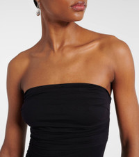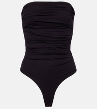 The Gwyneth bodysuit from Agolde is made from the brand's signature second-skin fabric to a sleek streamline silhouette. The strapless design features ruched detailing and a low-cut back. Product Details - Material: 80% polyamide, 20% elastane - Care instructions: machine wash cold - Made in the USA - Designer color name: Black - Item color: black - Closure: button fastening - Item number: P01052603 Size & Fit - True to size - Strapless - Fitted - Stretchy fabric - High-cut leg - The model seen in the picture is 178cm-5'10" and wearing a size XS