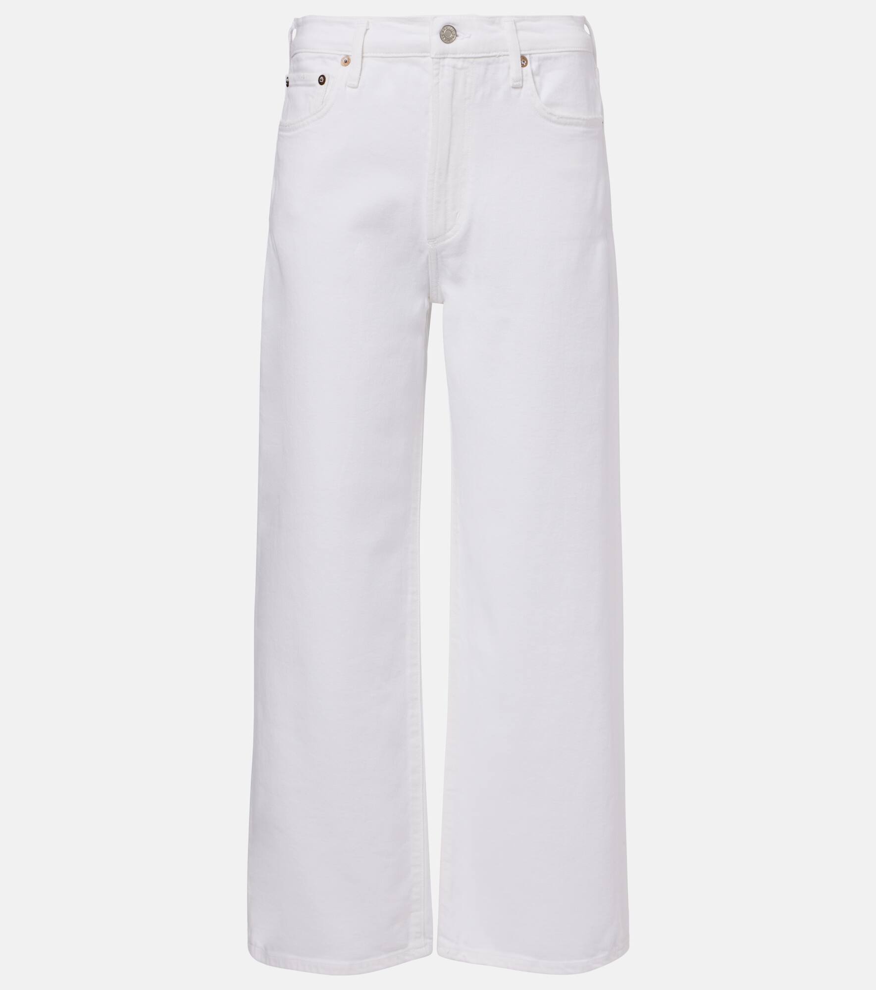 Setting the standard for modern denim, all of Agolde's designs are fit-tested and crafted from premium fabric. The Harper Crop jeans feature a slightly cropped, wide-leg silhouette along with marbling and fading details. Product Details - Material: 98% cotton, 2% elastane - Care instructions: machine wash cold - Made in Turkey - Designer color name: Sour Cream - Item color: white - Pockets: five pockets - Closure: zip and button fastening - Item number: P01052615 Size & Fit - True to size - Slightly stretchy fabric - Wide-leg - Mid-rise - The model seen in the picture is 178cm-5'10" and wearing a size 27