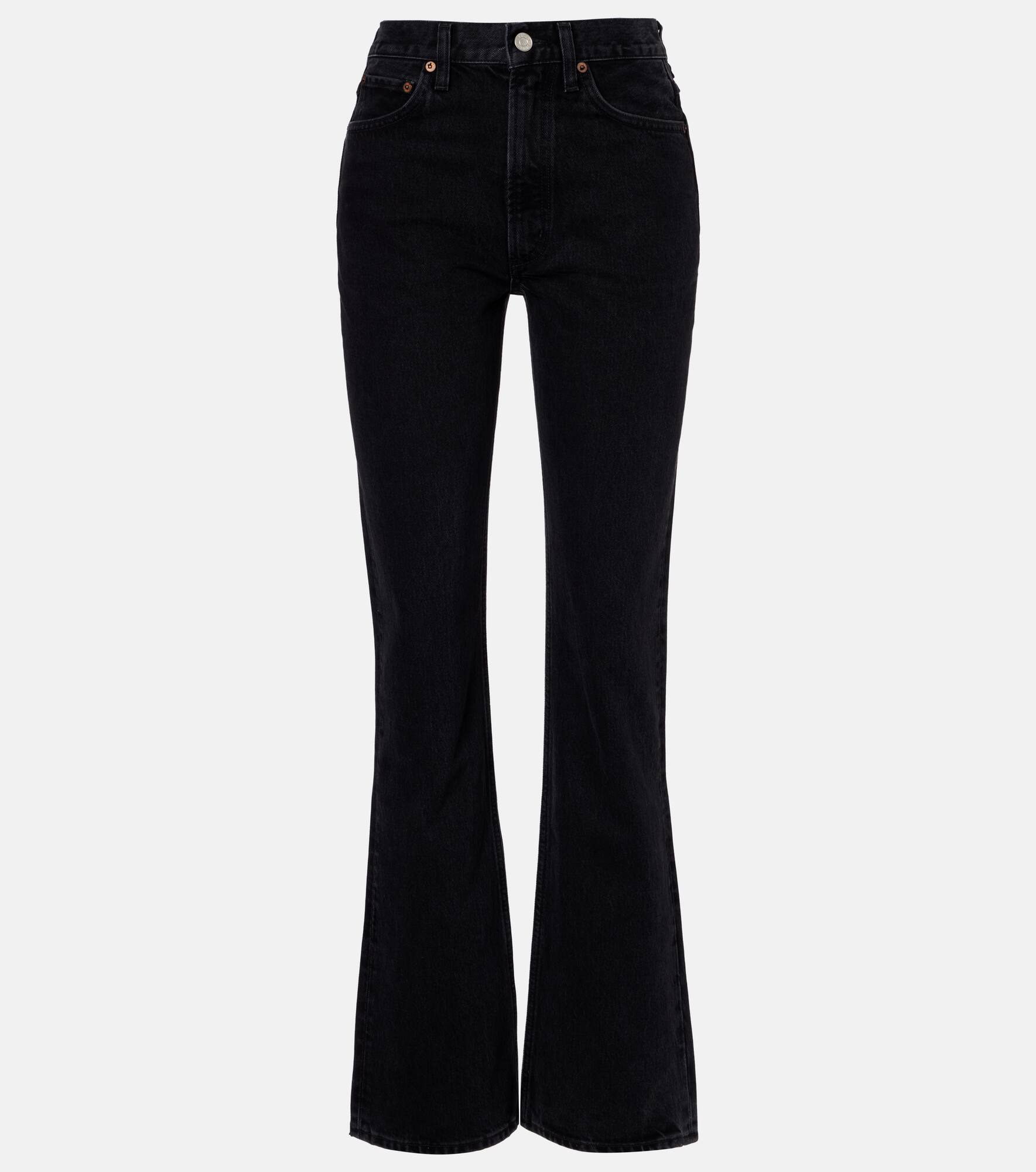 Setting the standard for modern denim, all of Agolde's designs are fit-tested and crafted from premium fabric. The Leena jeans are cut into a slightly flared silhouette with a mid-rise waistline. Product Details - Material: 67% cotton (organic), 22% lyocell, 11% cotton (recycled) - Care instructions: machine wash cold - Made in Turkey - Designer color name: Forecast - Item color: black - Closure: zipper fly, button fastening - Pockets: five pockets - Belt loops - Item number: P01111901 Size & Fit - True to size - Non-stretchy fabric - Flared - Mid-rise - The model seen in the picture is 178cm-5'10" and wearing a size 27