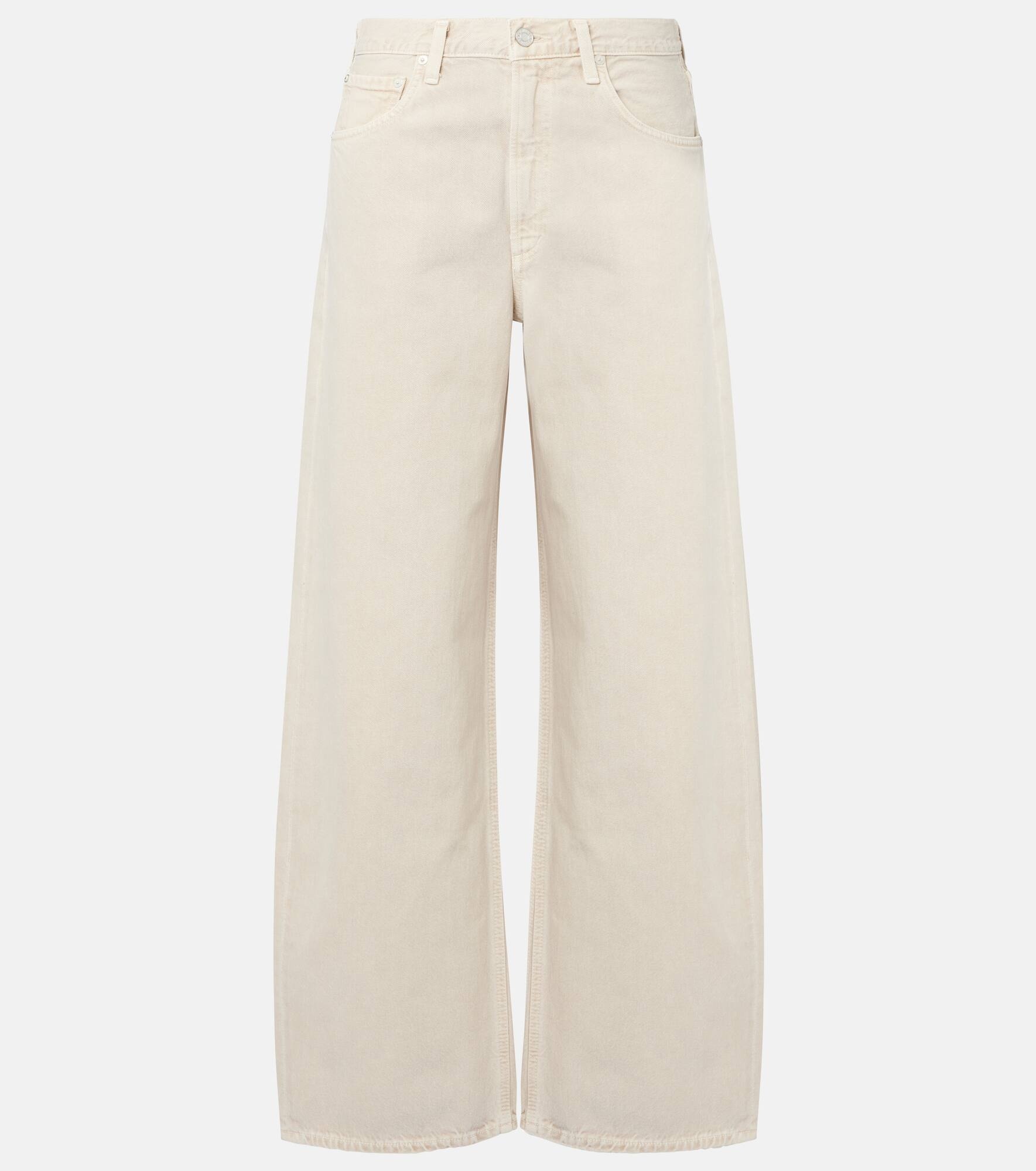 Setting the standard for modern denim, all of Agolde's designs are fit-tested and crafted from premium fabric. The Low Curve jeans are a subtle take on the iconic barrel-leg silhouette. Product Details - Material: 100% cotton - Care instructions: machine wash cold - Made in the USA - Designer color name: Scone - Item color: beige - Closure: zip and button fastening - Pockets: side slit pockets, back pockets - Belt loops - Item number: P01052598 Size & Fit - Non-stretchy fabric - Wide-leg - Low-rise - The model seen in the picture is 178cm-5'10" and wearing a size 27