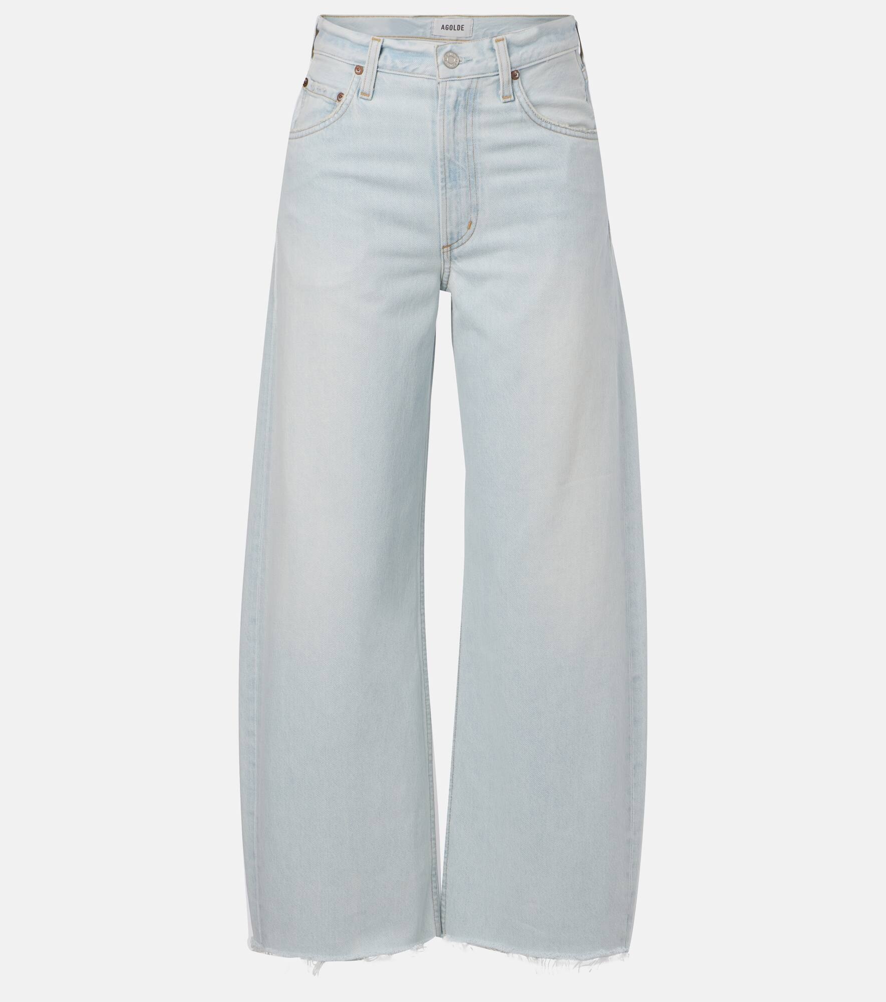 Setting the standard for modern denim, all of Agolde's designs are fit-tested and crafted from premium fabric. These jeans are a cut from lightwash denim into a barrel-leg silhouette with a mid-rise waistline and frayed hems. Product Details - Material: 67% cotton, 22% lyocell, 11% cotton (recycled) - Care instructions: machine wash cold - Made in the USA - Designer color name: Flourish - Item color: blue - Hardware color: silver - Pockets: five pockets - Closure: zip and button fastening - Belt loops - Frayed ends - Item number: P01057524 Size & Fit - True to size - Non-stretchy fabric - Wide-leg - Mid-rise - The model seen in the picture is 178cm-5'10" and wearing a size 27