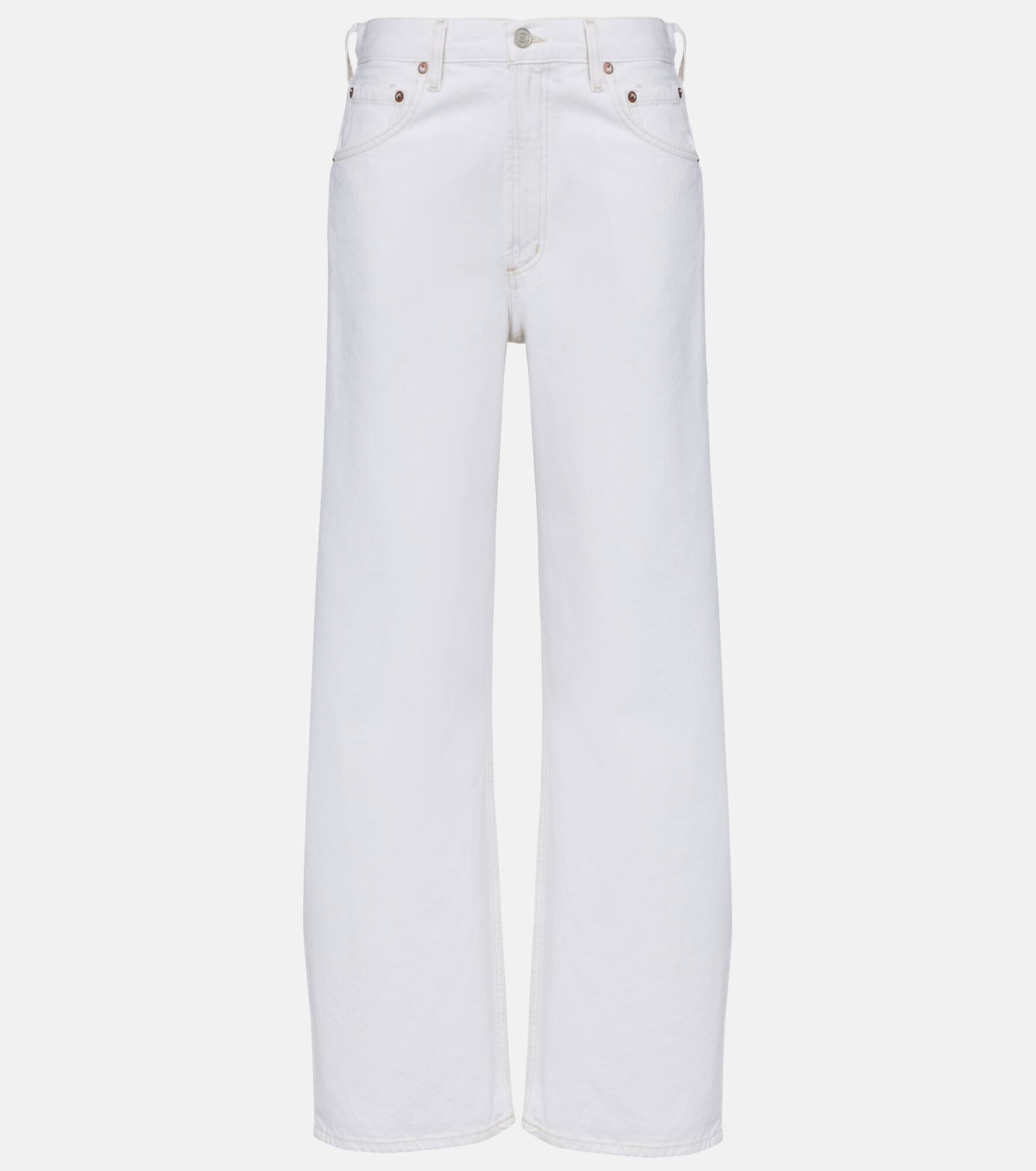 Setting the standard for modern denim, all of Agolde's designs are fit-tested and crafted from premium fabric. These jeans have a wide-leg silhouette with a mid-rise waistline. Product Details - Material: 100% cotton - Care instructions: machine wash cold - Made in Turkey - Designer color name: Milkshake - Item color: white - Pockets: five pockets - Closure: zip and button fastening - Item number: P01052591 Size & Fit - True to size - Non-stretchy fabric - Wide-leg - Mid-rise - The model seen in the picture is 178cm-5'10" and wearing a size 27