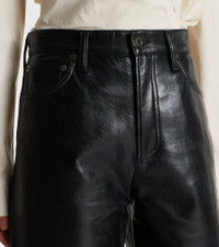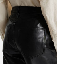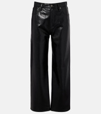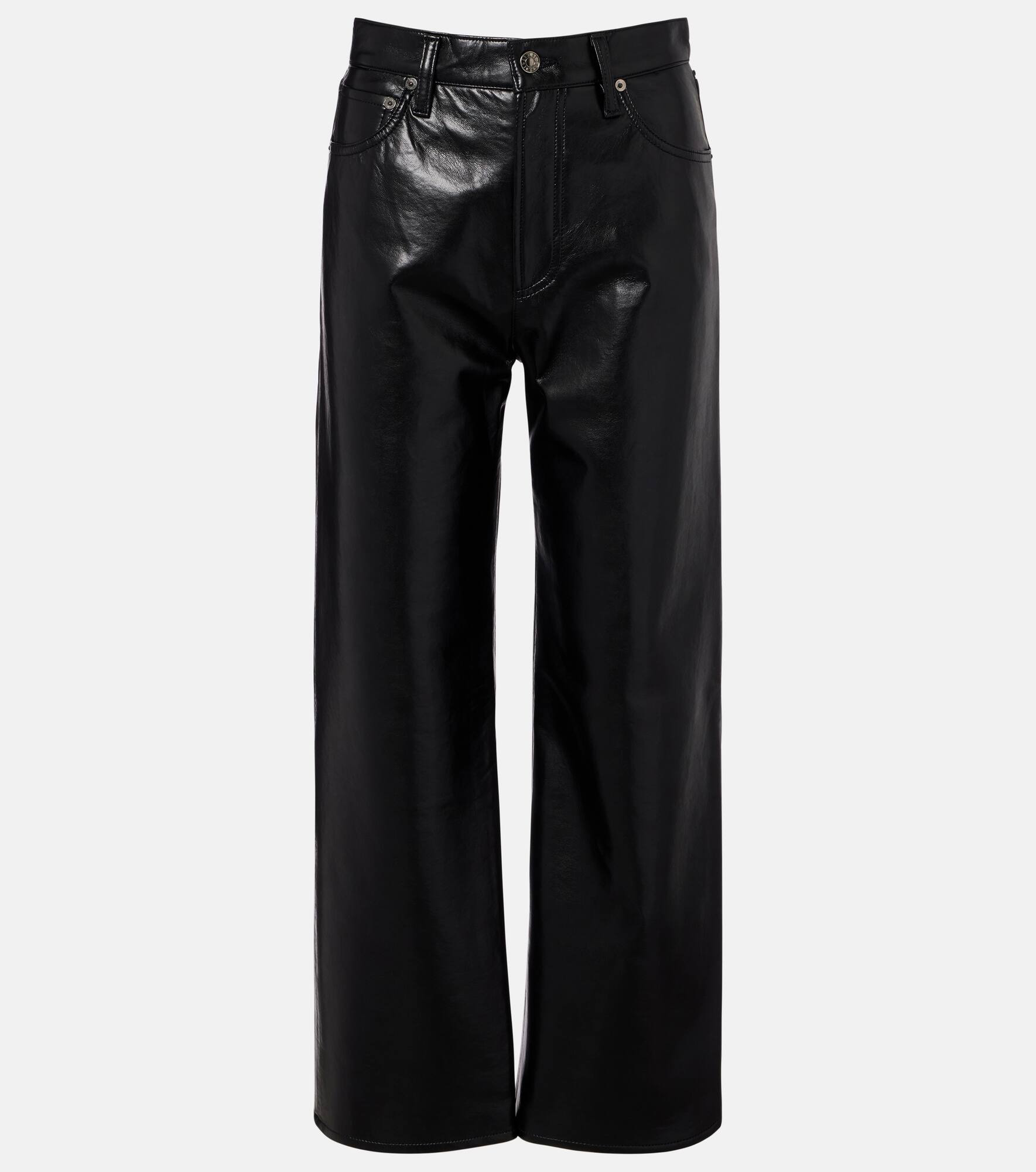 All of Agolde's designs are fit-tested and crafted from premium fabric. Partly made from recycled leather, the Ren pants are cut to an ankle-length, wide-leg silhouette and feature a high-rise waistline. Product Details - Material: 50% leather (recycled), 30% polyurethane, 10% viscose, 10% polyester - Care instructions: dry clean - Made in the USA - Designer color name: Detox - Item color: black - Closure: zipper fly, button fastening - Pockets: five pockets - Belt loops - Item number: P01111906 Size & Fit - True to size - Non-stretchy fabric - Wide-leg - The model seen in the picture is 178cm-5'10" and wearing a size 27