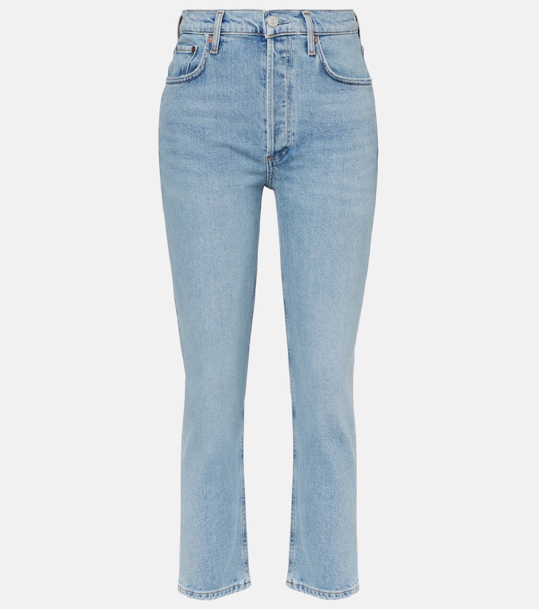 Setting the standard for modern denim, all of Agolde's designs are fit-tested and crafted from premium fabric. The Riley jeans are a straight-leg pair with a high-rise waistline, cropped silhouette, and distressed hems. Product Details - Material: 99% cotton, 1% elastane - Care instructions: machine wash cold - Made in Turkey - Designer color name: Formular - Item color: blue - Closure: concealed button placket - Pockets: five pockets - Item number: P01052617 Size & Fit - True to size - Non-stretchy fabric - Straight leg - High-rise - The model seen in the picture is 178cm-5'10" and wearing a size 27