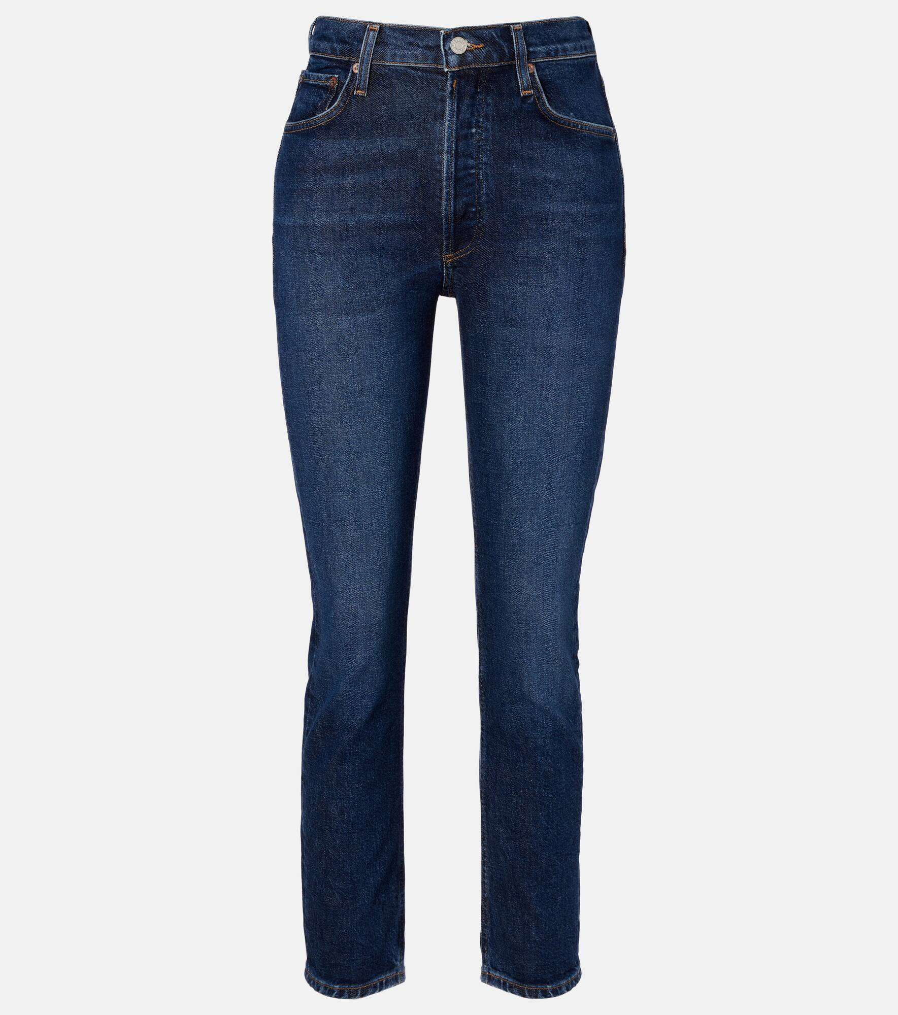 Setting the standard for modern denim, all of Agolde's designs are fit-tested and crafted from premium fabric. The Riley jeans are a skinny-fit style with a mid-rise waistline. Product Details - Material: 59% cotton (organic), 40% rayon, 1% elastane - Care instructions: machine wash cold - Made in Turkey - Designer color name: Divided - Item color: blue - Closure: concealed button placket - Pockets: five pockets - Belt loops - Item number: P01107299 Size & Fit - True to size - Slightly stretchy fabric - Straight leg - Mid-rise - The model seen in the picture is 178cm-5'10" and wearing a size 27
