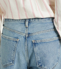 Setting the standard for modern denim, all of Agolde's designs are fit-tested and crafted from premium fabric. The Twist jeans feature wide legs, a low-rise waist, and a signature twisted outseam. Product Details - Material: 100% cotton - Care instructions: hand wash - Made in the USA - Designer color name: Stage - Item color: blue - Pockets: five pockets - Belt loops - Dye: medium - Item number: P01067665 Size & Fit - True to size - Non-stretchy fabric - Wide-leg - Low-rise - The model seen in the picture is 178cm-5'10" and wearing a size 27