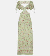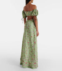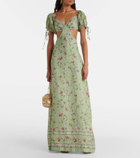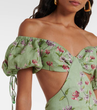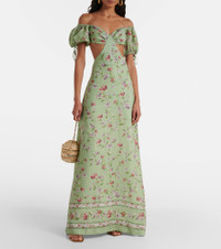 Agua by Agua Bendita's designs are handcrafted by female artisans in and around Medellin, Colombia. This romantic design features a sweetheart neckline, puffed sleeves with tie details, cutout details on the sides and a fitted silhouette. Product Details - Material: 100% linen - Care instructions: machine wash at 30 degrees - Made in Colombia - Designer color name: Honeysuckle - Comes with garment bag - Lining: 100% cotton - Closure: zip and hook fastening - Item number: P01007096 Size & Fit - True to size - Low back - Off-the-shoulder - Cinched waist - Non-stretchy fabric - The model seen in the picture is 178cm-5'10" and wearing a size XS