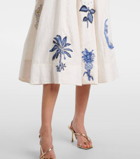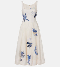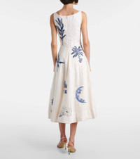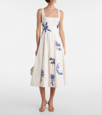 Agua by Agua Bendita’s designs are carefully handcrafted by local female artisans in and around Medellin, Colombia. The Frontera Wild midi dress is crafted from linen with details that take 20 hours to hand embroider. Product Details - Material: 100% linen - Care instructions: machine wash at 30 degrees - Made in Colombia - Designer color name: Wild - Item color: white, blue - Lining: 100% cotton - Closure: zipped back - Pockets: side slit pockets - Fully lined - Includes: dust bag - Item number: P01073142 Size & Fit - True to size - Cinched waist - Non-stretchy fabric - The model seen in the picture is 178cm-5'10" and wearing a size XS