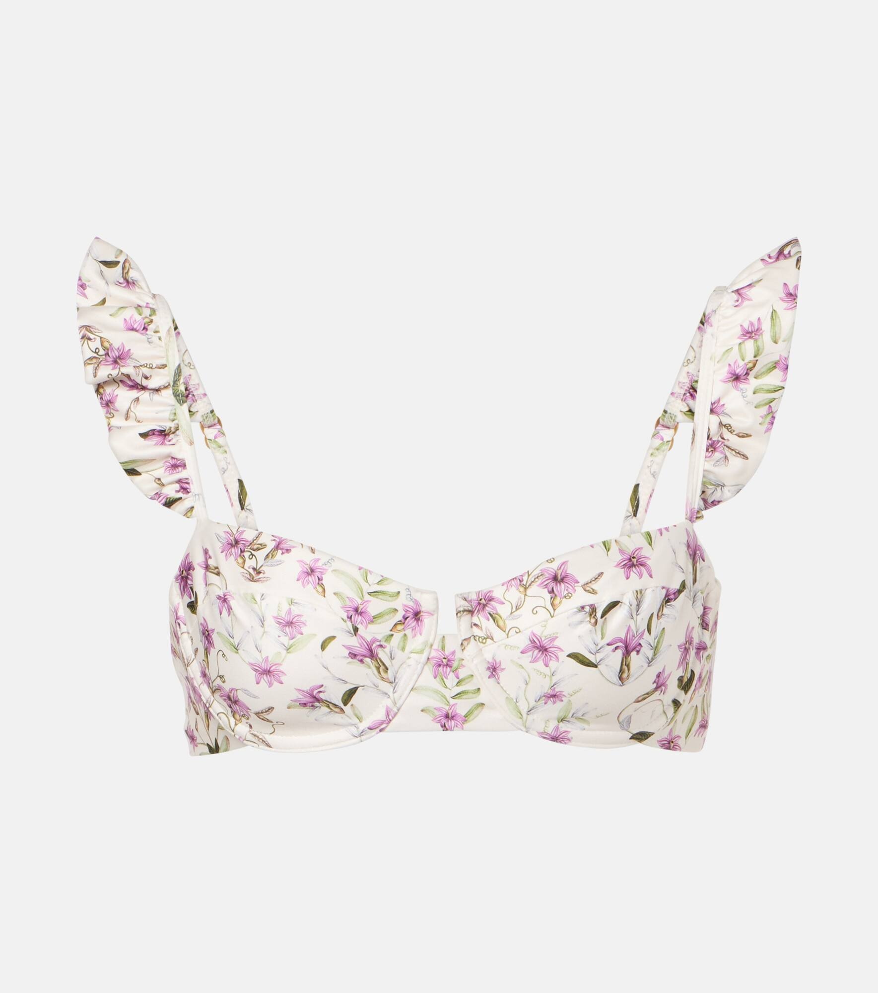 Prepare for sunlit destinations with vibrant swimwear, like the Kiwi bikini top from Agua by Agua Bendita. The balconette style is printed with a lively motif and complete with ruffled straps. Product Details - Material: 81% polyester (recycled), 19% elastane - Care instructions: hand wash - Made in Colombia - Designer color name: Mutisia - Item color: multicolor - Lining: 78% polyamide, 22% elastane - Item number: P01056557 Size & Fit - True to size - Underwired top - Unpadded Top - The model seen in the picture is 178cm-5'10", cup size B, and wearing a size XS