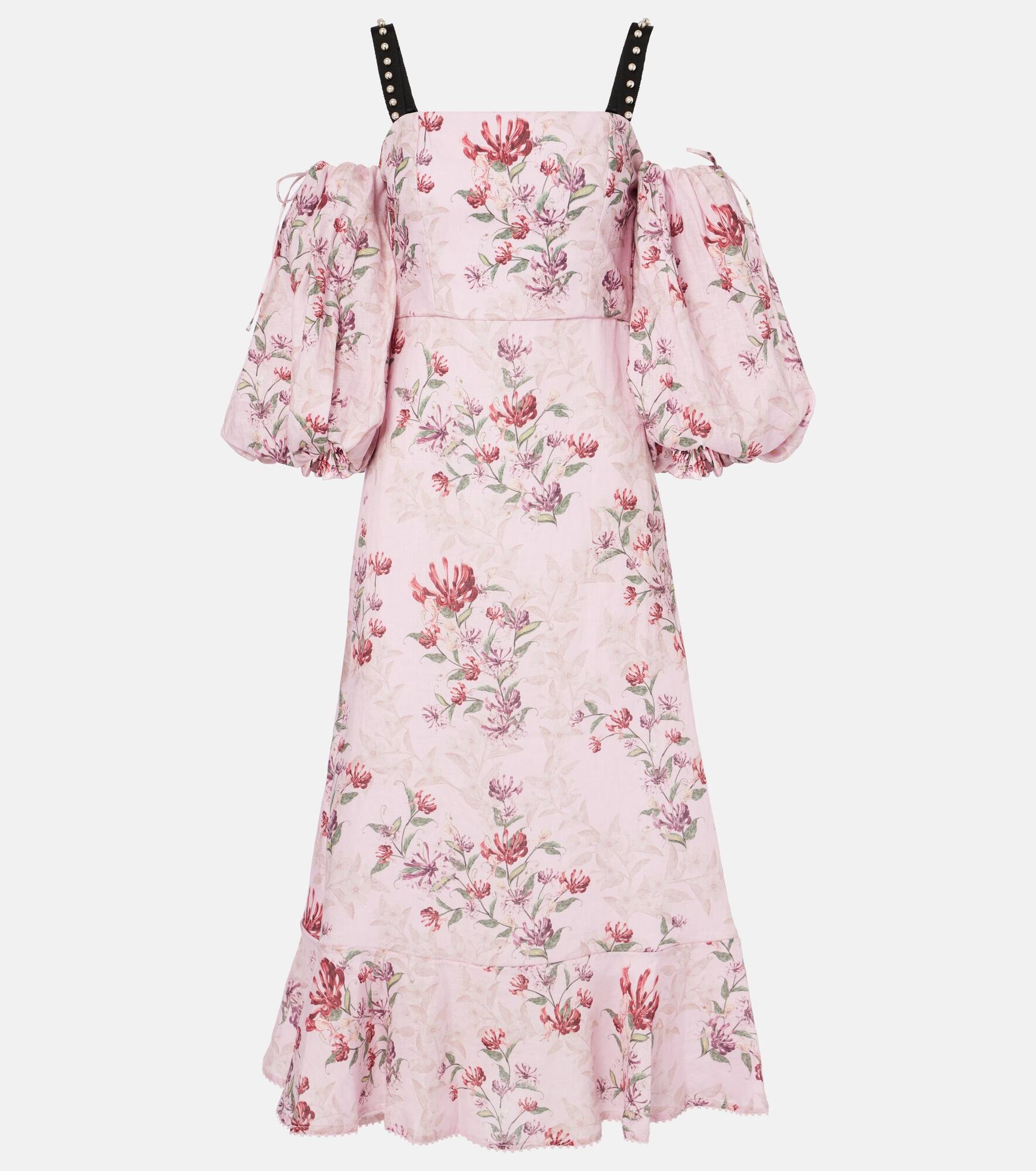 Agua by Agua Bendita’s designs are handcrafted by female artisans in and around Medellin, Colombia. This romantic dress features a square neckline, off-the-shoulder balloon sleeves with tie details and a relaxed silhouette. Product Details - Material: 100% linen - Care instructions: machine wash at 30 degrees - Made in Colombia - Designer color name: Wisteria - Comes with garment bag - Lining: 100% cotton - Closure: zip and hook fastening - Item number: P01007111 Size & Fit - True to size - Cinched waist - Non-stretchy fabric - The model seen in the picture is 178cm-5'10" and wearing a size XS