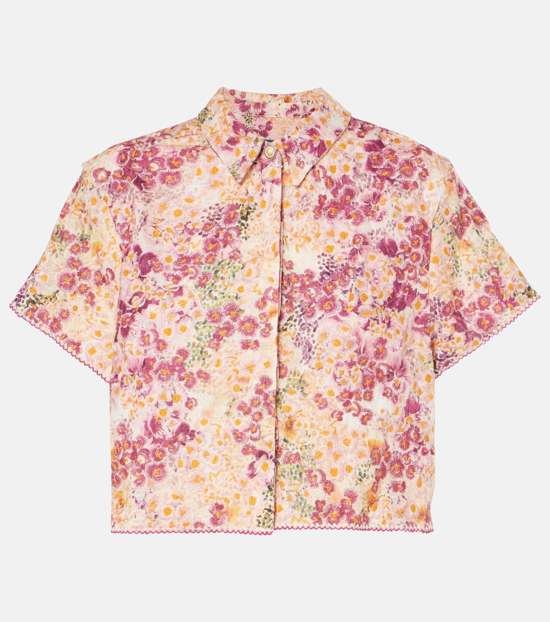 Product Details - Material: 100% linen - Care instructions: dry clean - Made in Colombia - Designer color name: Florecer - Closure: concealed buttoned front - Collar: classic (Straight point) - Length: cropped - Sleeves: short-sleeved - Item number: P00985195