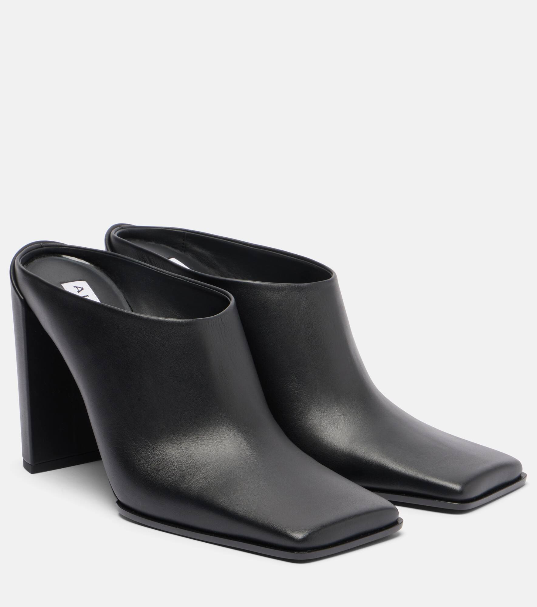 These mules from Alaia are crafted from smooth leather in a streamlined finish. Defined by a square toe silhouette and distinctive arch, the pair rests on sturdy 90mm block heels. Product Details - Upper: calf leather - Lining: leather - Sole: leather insole, leather and rubber sole - Toe shape: pointed toe - Made in Italy - Includes: shoe box, dust bags - Designer color name: Noir - Item color: black - Item number: P01088214 Size & Fit - True to size - Half sizes please take the next size down - European sizes - 11cm-4.5" heel (size EU 38)