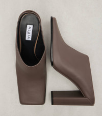 Founded in 1964, the Parisian fashion house Alaia is renowned for its couture spirit. Crafted in Italy from supple leather, these sleek mules boast a square toe silhouette and sit atop 90mm block heels. Product Details - Upper: calf leather - Lining: leather - Sole: leather insole, leather and rubber sole - Toe shape: square toe - Made in Italy - Includes: shoe box, dust bag - Designer color name: Tourterelle - Item color: gray - Item number: P01088147 Size & Fit - True to size - Half sizes please take the next size down - European sizes - 11cm-4.5" heel (size EU 38)