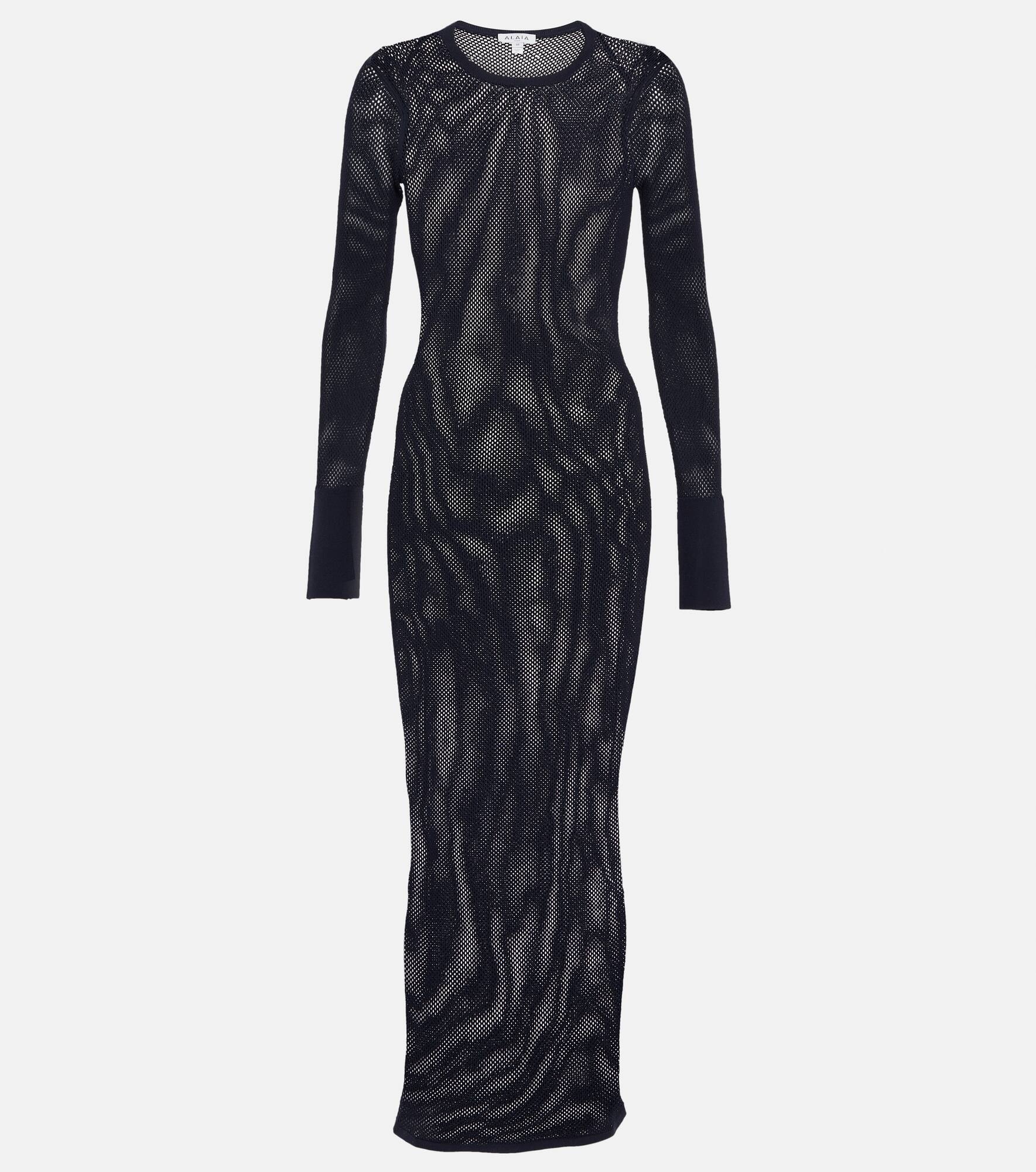 Alaïa's Archetypes collection celebrates the craftsmanship, techniques, and silhouettes that have come to define the Maison. Made from an alluring, semi-sheer fishnet fabric, this gown is shaped for a figure-hugging fit. Product Details - Material: 67% viscose, 33% polyester - Care instructions: dry clean - Made in Italy - Designer color name: Minuit - Item number: P00820618 Size & Fit - True to size - Sheer - Fitted - Mid-weight material - The model seen in the picture is 178cm-5'10" and wearing a size FR 36