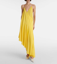 Asymmetric jersey midi dress Yellow