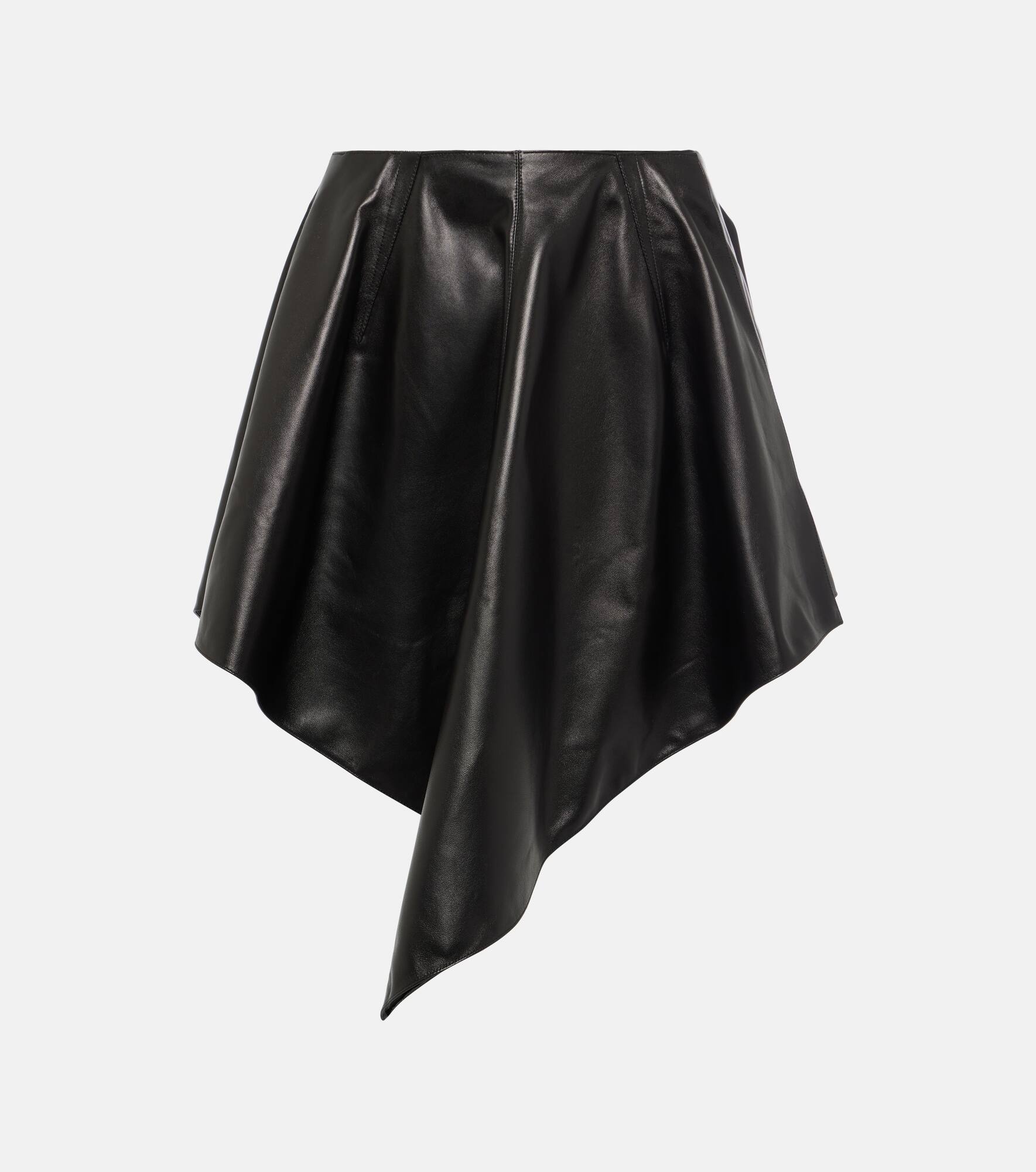 Asymmetric leather miniskirt
