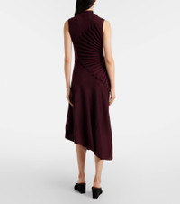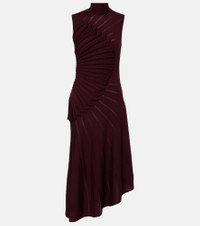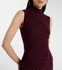 Upholding the legacy of Azzedine Alaia, the maison’s collections achieve an artful balance between sculptural and wearable. Knitted in Italy from pure wool, this midi dress features radial sculpted pleats, completed by an asymmetrical hem. Product Details - Material: 100% wool - Care instructions: dry clean - Made in Italy - Designer color name: Burgundy - Item color: burgundy - Trim: 86% wool, 13% polyamide, 1% elastane - Hem: uneven - Item number: P01112238 Size & Fit - True to size - Fitted - Stretchy fabric - The model seen in the picture is 178cm-5'10" and wearing a size FR 36