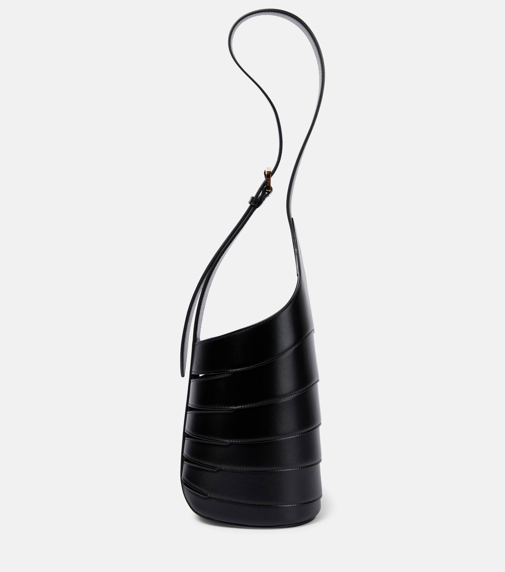 The Babel Small shoulder bag from Alaïa is inspired by the brand’s iconic striped dress. Made from black calfskin leather, the style has an adjustable shoulder strap, cutout slit detailing, and a removable zipped pouch inside. Product Details - Detachable zipped pouch - Adjustable shoulder strap - Designer color name: Noir - Comes with dust bag - Internal details: leather lining - Closure: open top - Made in Italy - Material: leather - Item number: P00836835 Size & Fit - Width 22cm-8.5" - Max. height 30cm-12" - Depth 14cm-5.5" - Min. length shoulder strap 65cm-25.5" - Max. length shoulder strap 100cm-39.5"