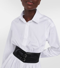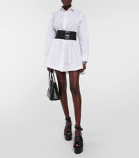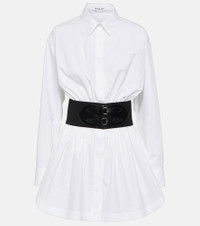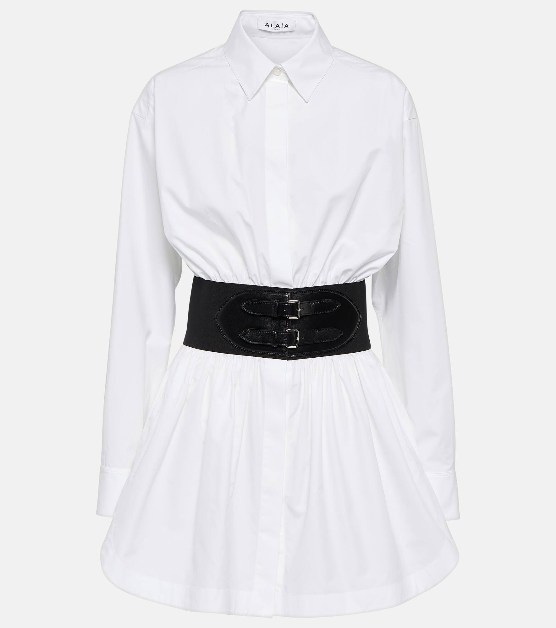 This shirt from Alaïa is ideal for office-to-cocktails kind of days. Made from cotton poplin, the classic design has a longline silhouette and features the brand-signature buckled leather belt for a contemporary twist. Product Details - Made in Italy - Closure: concealed buttoned front - Care instructions: specialist clean - Designer color name: Blanc - Lining: 28% elastane, 72% polyamide - Material II: 100% leather - Material: 100% cotton - Item number: P00820555 Size & Fit - True to size - Loose fit, elasticated waist - Mid-weight material - The model seen in the picture is 178cm-5'10" and wearing a size FR 36