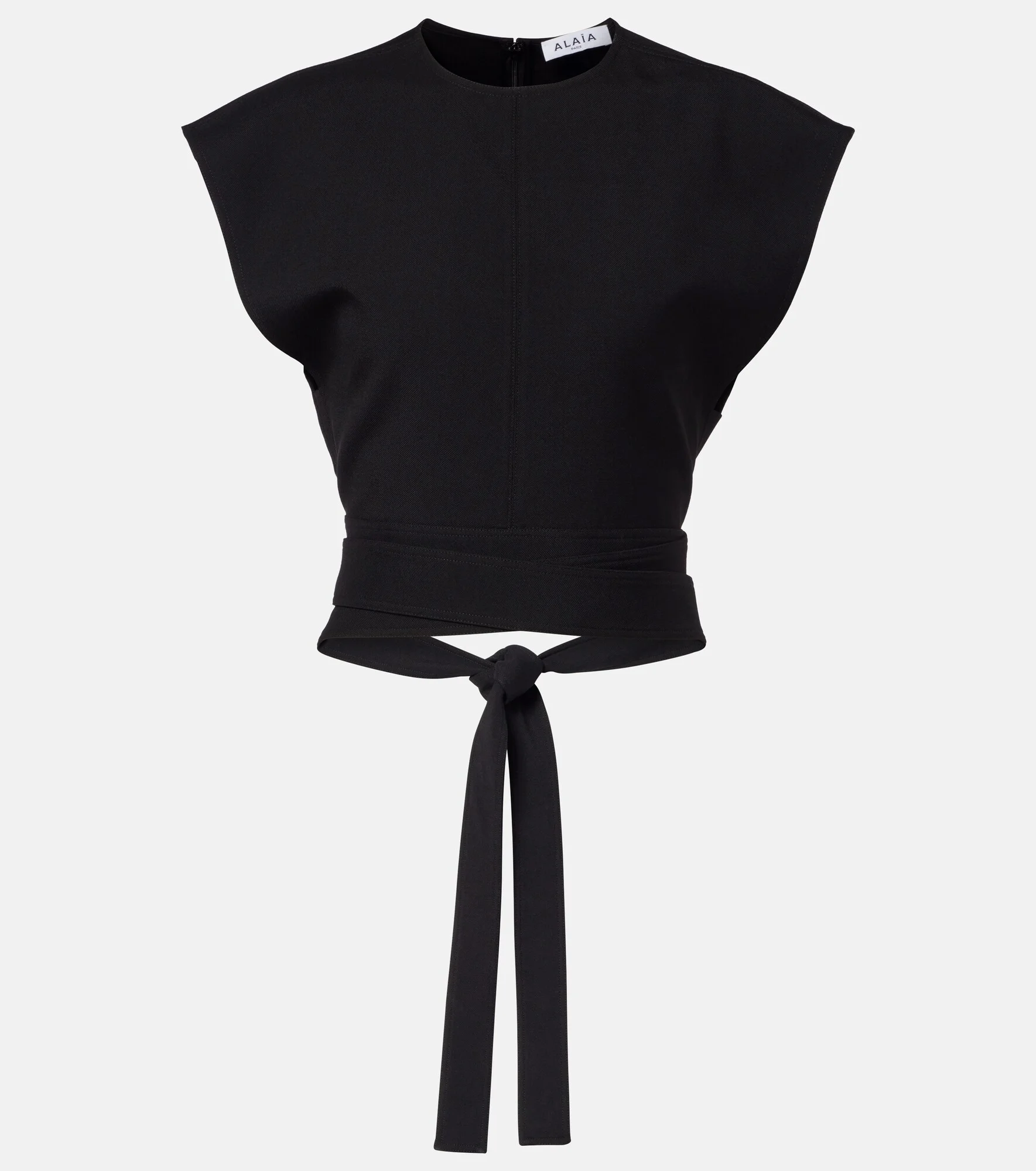 Upholding the legacy of Azzedine Alaia, the maison’s collections achieve an artful balance between sculptural and wearable. Made in Italy from fine wool, this top is detailed with an attached belt that ties at the back. Product Details - Material: 98% wool, 2% elastane - Care instructions: dry clean - Made in Italy - Color: black - Designer color name: Black - Attached belt - Self-tie back - Item number: P01166093 Size & Fit - True to size - Cinched waist - Adjustable at the waist - Non-stretchy fabric - Cropped - The model seen in the picture is 178cm-5'10" and wearing a size FR 34