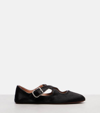 Unique silhouettes and impeccable finishes set Alaia's designs apart. These ballet flats are made from calf hair for a tactile effect and boast crossover buckled straps. Product Details - Upper: calf hair - Lining: leather - Sole: leather insole, rubber sole - Toe shape: round toe - Made in Italy - Includes: shoe box, dust bags - Designer color name: Chocolat - Item color: brown - Item number: P01088209 Size & Fit - Fits slightly large to size - we recommend trying a half size smaller - European sizes