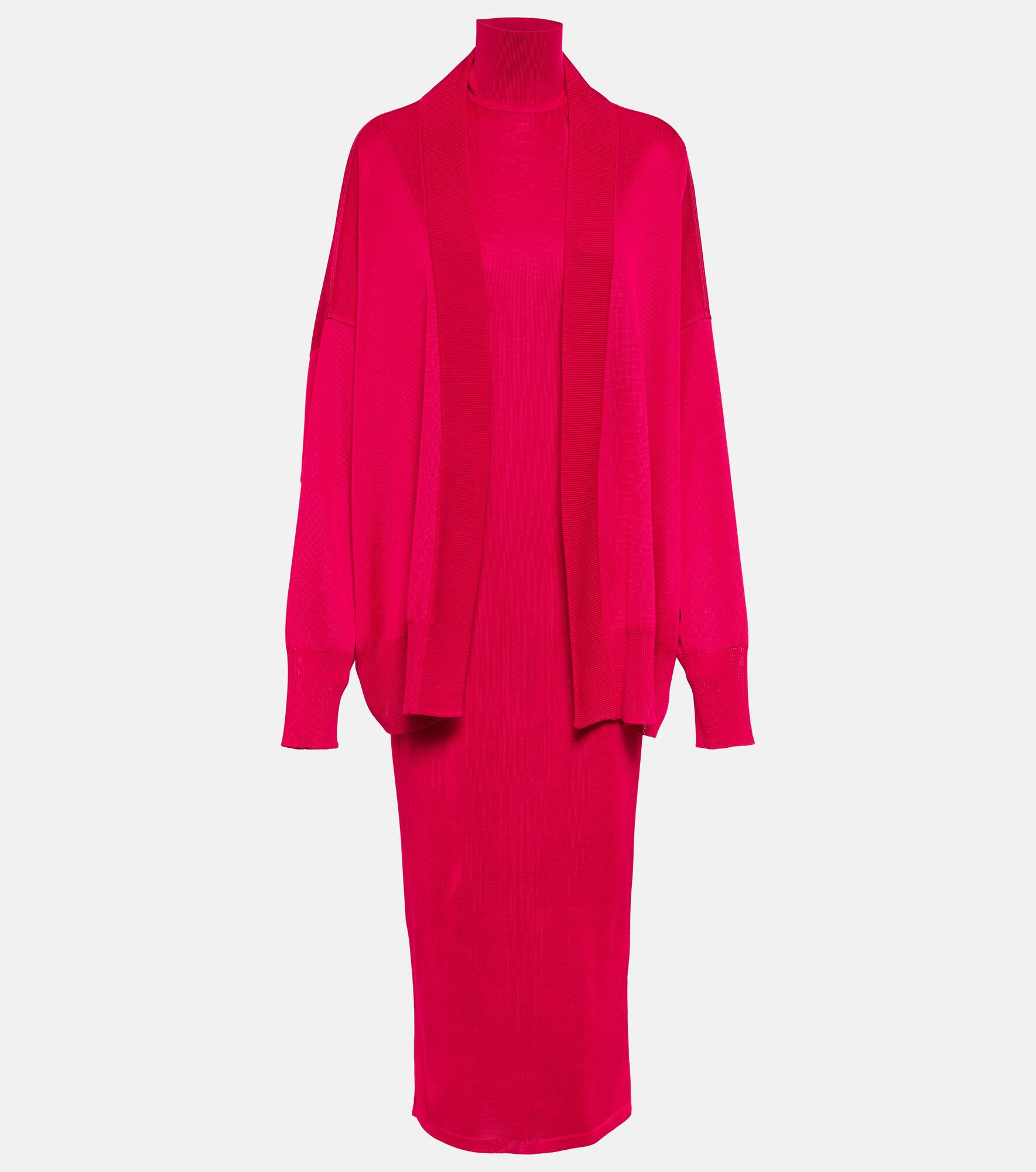 Cardigan high-neck midi dress