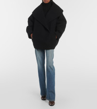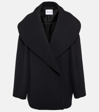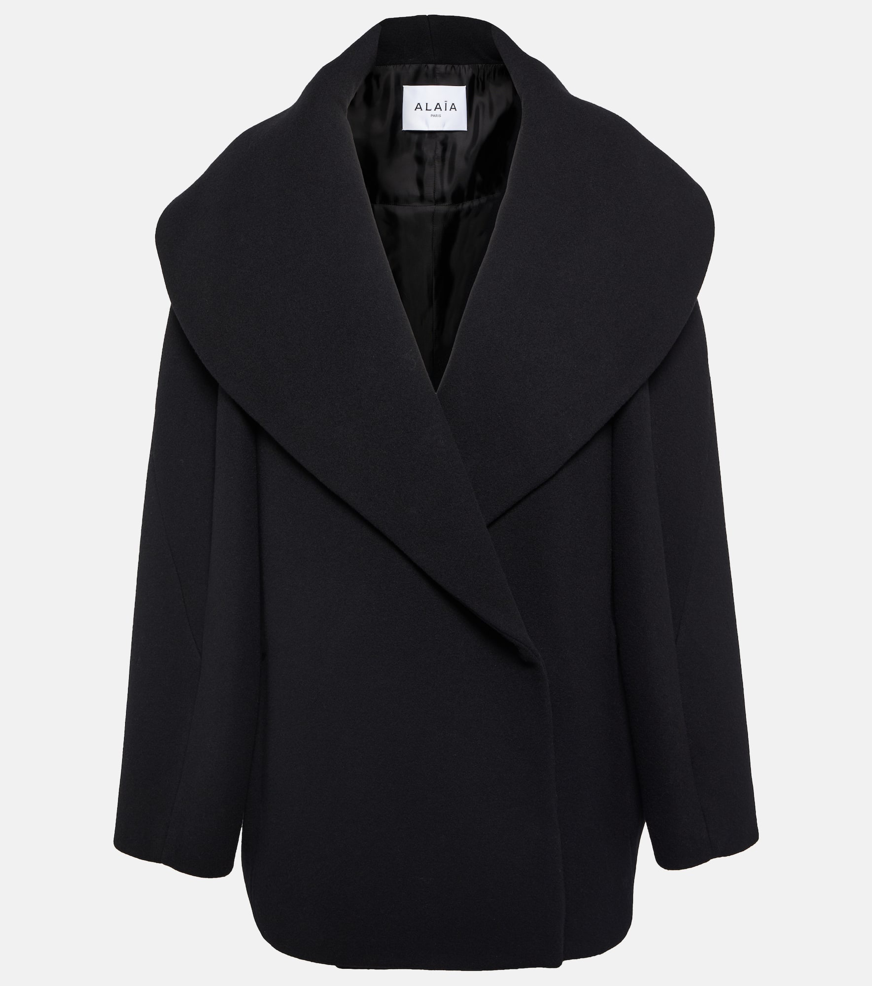 Its exaggerated collar and cocoon silhouette define Alaïa's take on the timeless wrap coat. The elegant style is expertly crafted from weighty virgin wool boasting drop shoulders and a shorter length. Product Details - Material: 100% virgin wool - Care instructions: dry clean - Made in France - Designer color name: Noir Alaia - Lining: 100% cupro - Closure: concealed buttoned front - Pockets: zipped pockets - Item number: P00846543 Size & Fit - Fits large to size - we recommend trying one size smaller - Designed for an extremely oversized fit - Mid-weight material - Falls below the hip - The model seen in the picture is 178cm-5'10" and wearing a size FR 34