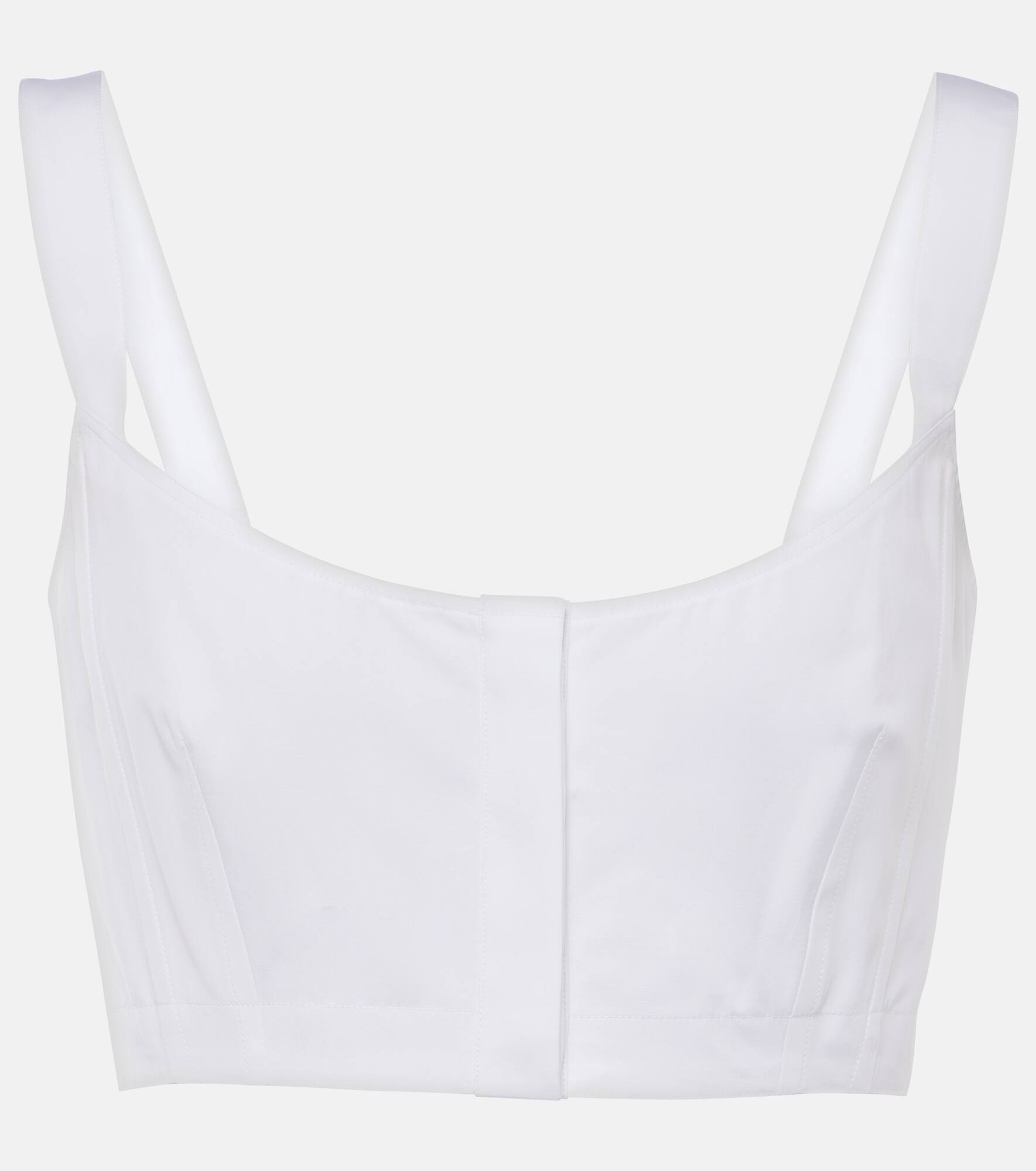 Product Details - Material: 100% cotton - Care instructions: dry clean - Made in Italy - Designer color name: Blanc - Closure: concealed buttoned front - Item number: P00948276 Size & Fit - True to size - Internal boned corset for support - Fitted - Non-stretchy fabric - Cropped - The model seen in the picture is 178cm-5'10" and wearing a size FR 36