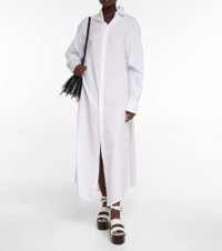 Alaïa reimagines the classic shirt dress with cutout-detailing at the collar for subtle, yet on-brand flair. It’s cut from white, Japanese cotton poplin to a wide, maxi-length silhouette. - material: 100% cotton - care instructions: spot clean - buttoned front - Made in Italy - buttoned cuffs - detachable band - Designer colour name: Blanc