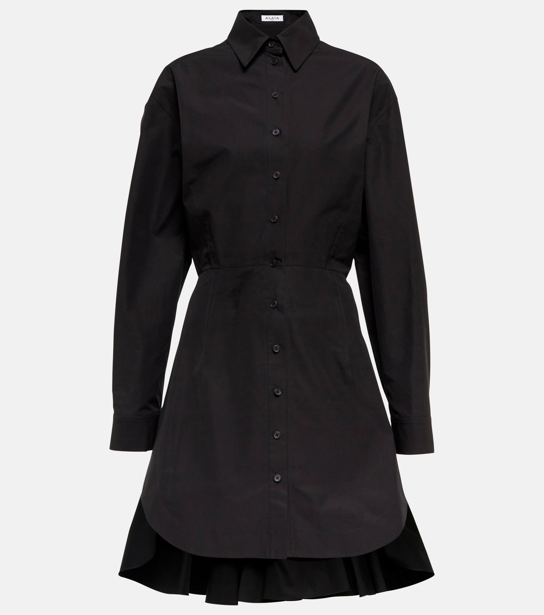 Alaïa's unique quality craftsmanship is evidenced in this shirt dress. A timeless piece, it's made from cotton poplin and has a fluted hem at the back. - material: 100% cotton - care instructions: dry clean - buttoned front - Made in Italy - buttoned cuffs - Designer colour name: Noir size & fit - True to size - Dropped shoulders - Cinched waist - Mid-weight material - The model seen in the picture is 178cm-5'10" and wearing a size FR 36