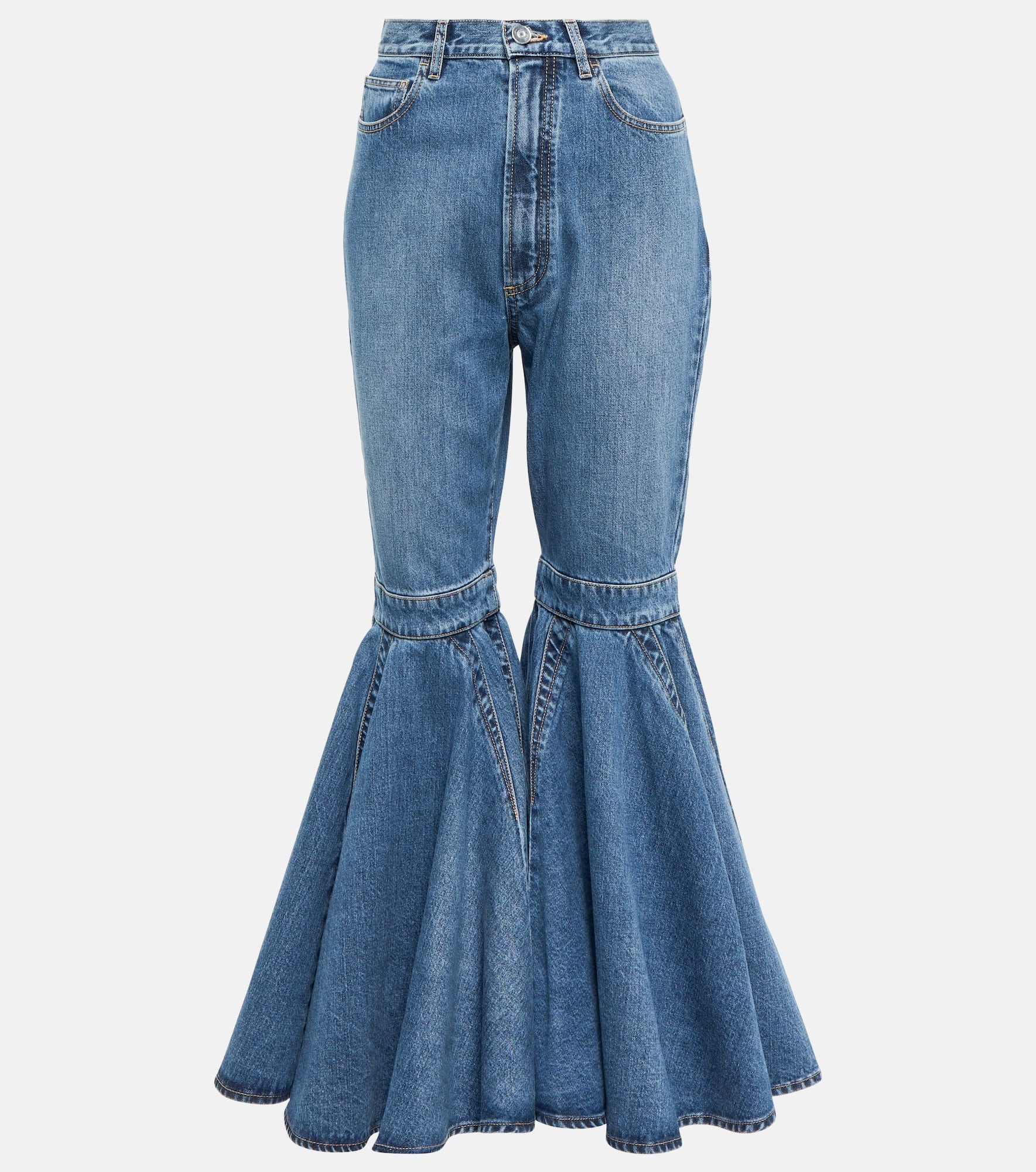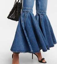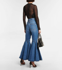 Alaïa brings sculptural flair to these jeans – they're designed with ultra-flared crinoline hems to statement effect. Made from cotton denim, the pair has a high-rise waist and fits snugly through the thighs. Product Details - Pocket lining: 35% cotton, 65% polyester - Pockets: five pockets - Made in Italy - Care instructions: machine wash at 30 degrees - Belt loops - Closure: zipper fly, button fastening - Lining: partially lined - Material: 1% polyurethane, 99% cotton - Item number: P00700659 Size & Fit - Fits small to size - we recommend trying two sizes larger - Mid-weight material - Non-stretchy fabric - Slim-leg with a flared hem - Low-rise - Inseam length approx: 695cm-273.5" - The model seen in the picture is 178cm-5'10" and wearing a size FR 40