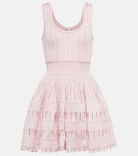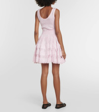 The Crinoline minidress showcases Alaïa’s artful affinity for sculptural design. Framing the silhouette with a scooped neckline and a voluminous skirt, this piece has a ribbed-knit construction with contrasting pointelle panels and a scalloped trim. Product Details - Material: 97% viscose, 1% elastane, 2% polyamide - Material III: 100% viscose - Made in Italy - Material IV: 34% polyamide, 61% viscose, 5% elastane - Designer color name: Rose Dragee - Care instructions: specialist clean - Material II: 89% viscose, 4% elastane, 7% polyamide - Item number: P00752989 Size & Fit - True to size - Petite sizing - Cinched waist - Mid-weight material - The model seen in the picture is 178cm-5'10" and wearing a size FR 36