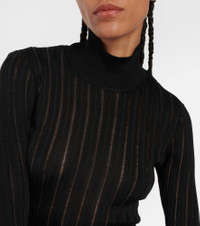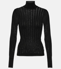 Alaïa’s streamlined focus on form is highlighted by this turtleneck top. The ribbed style is made from brand-signature crinoline and hugs the silhouette for a sleek look. Product Details - Material II: 4% polyamide, 95% viscose, 1% polyurethane - Made in Italy - Material: 99% viscose, 1% polyamide - Designer color name: Noir Alaia - Care instructions: dry clean - Item number: P00820624 Size & Fit - Fits small to size - we recommend trying one size larger - Fitted - Mid-weight material - Stretchy fabric - Falls to the hip - The model seen in the picture is 178cm-5'10" and wearing a size FR 38