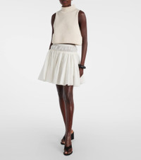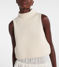 Crafted from a cotton-blend, this Alaia top is an essential wardrobe staple, perfect for casual everyday wear or refined looks. This sleeveless style features a high neck, a distinctive folded hem, and a chic cropped shape. Product Details - Material: 76% cotton, 24% polyamide - Care instructions: dry clean - Made in Italy - Designer color name: Blanc Naturel - Item color: white - Length: cropped - Collar: mockneck - Item number: P01047445 Size & Fit - True to size - Designed for a loose fit - Thick material - Non-stretchy fabric - Cropped - The model seen in the picture is 178cm-5'10", cup size %cupsize%, and wearing a size FR 36